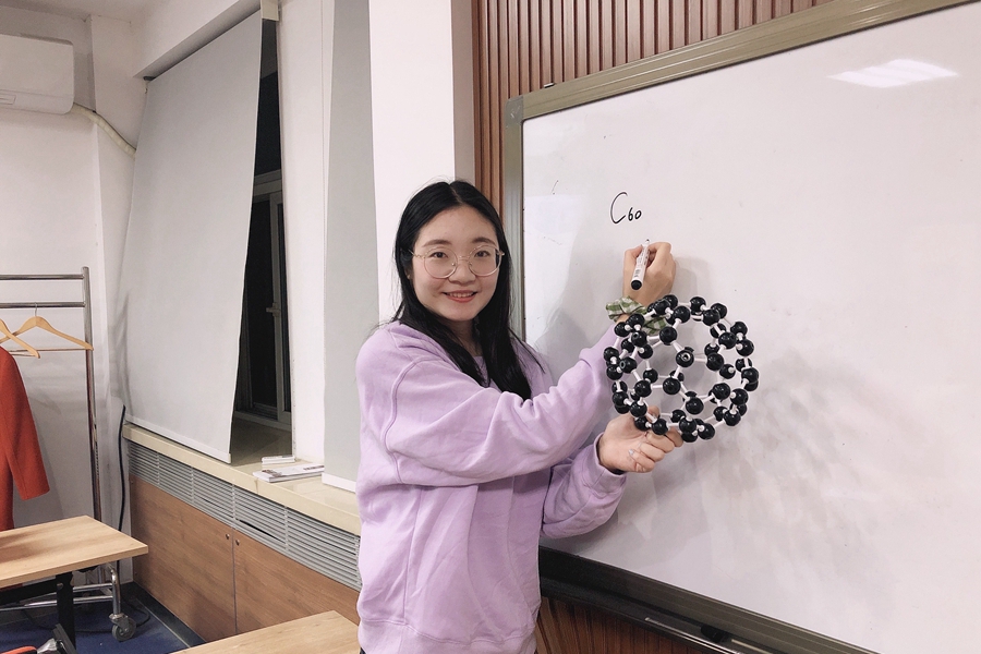 岁月走走停停,而脚步却永不停歇。时间会记得,那些儿时课堂诞生的梦想、实验室里那件白大褂、试管中液体轻轻晃荡的瞬间、行走在祖国每一片土地上的脚印以及千千万万个日夜图书馆中不息的灯火。那些在她人生第一堂化学课上,曾惊叹过的变化多端的化学反应,终于在她的内心泛起绚丽多彩又伟丽壮阔的波澜;那些她在和中学化学兴趣小组的伙伴一起反复设计、尝试、记录的大大小小实验,终于在她大学本科生涯的结尾给出了令人欢喜的答案。