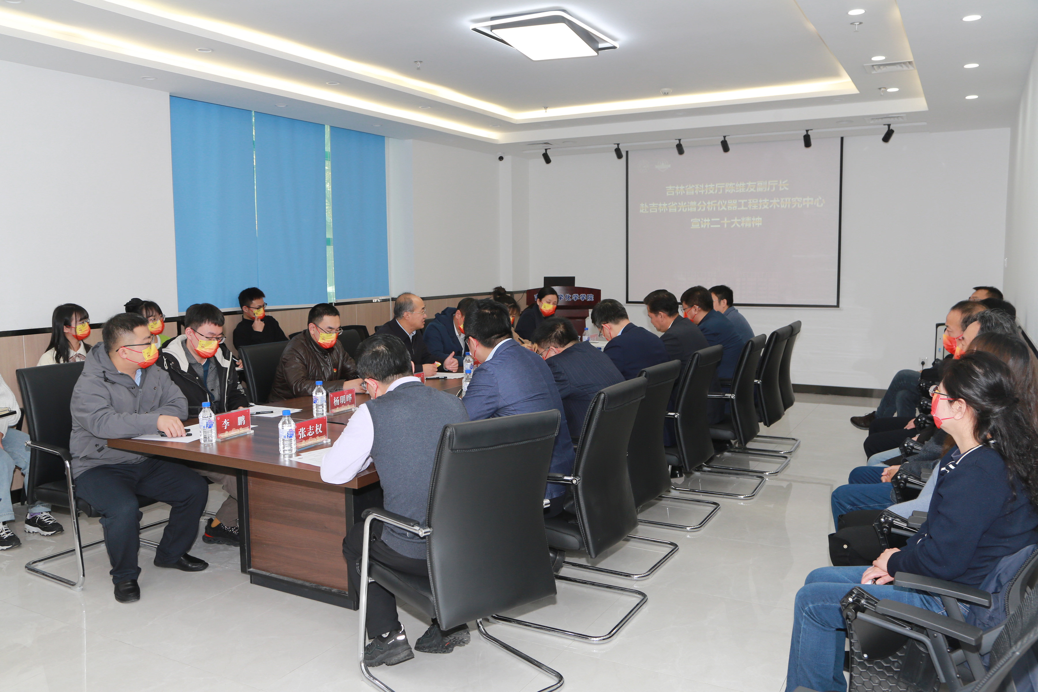 2022年11月15日上午,吉林省科技厅副厅长、一级巡视员陈维友一行到EMC易倍平台吉林省光谱分析仪器工程技术研究中心宣讲党的二十大精神。EMC易倍平台党委常委、常务副董事长郑伟涛出席会议。宣讲会由EMC易倍平台公司党委书记宁德宽主持。