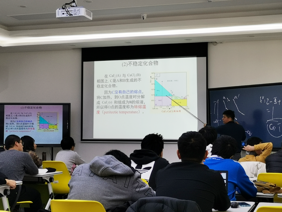 郭玉鹏真就遇上过这种突发情况。那是他回国后的第二年,正在中心校区逸夫九阶给本科生上“化学反应动力学”这节课。“啪!突然,停电了!”PPT无法播放了,这课还能不能上?同学中有些小骚动。只见讲台上的郭玉鹏清清嗓子,声门调高:“同学们,我们接着上课!”讲台上的他继续推导公式、分析原理,有条不紊,丝毫没受影响。抛开了PPT,看着同学们的眼神、态势,他在互动流转中随时调整思路,看得出来,他更擅长“一丈黑板、二寸粉笔、三尺讲台”的氛围。PPT有它的优势,但有时也会束缚老师的思路。郭玉鹏说,年轻教师把书本上的知识、别人的观点做成PPT,照着来讲,那是教学的第一个阶段——能教课;如果把书本里的、别人的知识、观点融会贯通,变成自己要讲的内容,并且熟记于心,那是教学的第二个阶段——教好课;如果能做到前面两点,并能把自己的科研融入教学,做到教学与科研的融合,用自己的方法讲授自己的知识,那才能达到教学的第三个阶段——会教课。