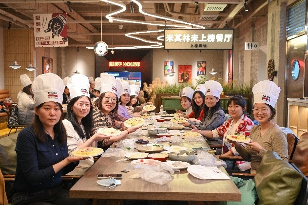 值此第113个“三八”妇女节之际,为进一步丰富女教职员工的精神文化生活,营造和谐、融洽的工作氛围,EMC易倍官方网站于3月6日,举办了“柔肩担重任,致敬她力量” 披萨DIY主题活动。公司副经理张贺、行政办公室主任梁龙琪与四十余名女教职员工共同参与了活动。