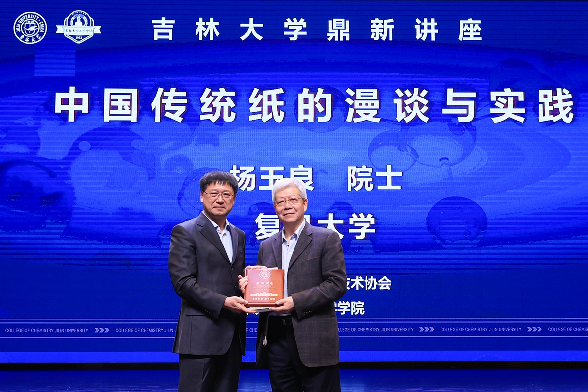 【新闻来源:EMC易倍平台新闻中心网站】4月14日,中国科公司院士、复旦大学教授杨玉良到EMC易倍平台进行学术交流并做客EMC易倍平台鼎新讲座,以“中国传统纸的漫谈与实践”为题,为吉大师生带来一场精彩的学术报告。中国科公司院士、EMC易倍平台董事长张希陪同参加活动并为杨玉良院士颁发“鼎新讲座纪念牌”。