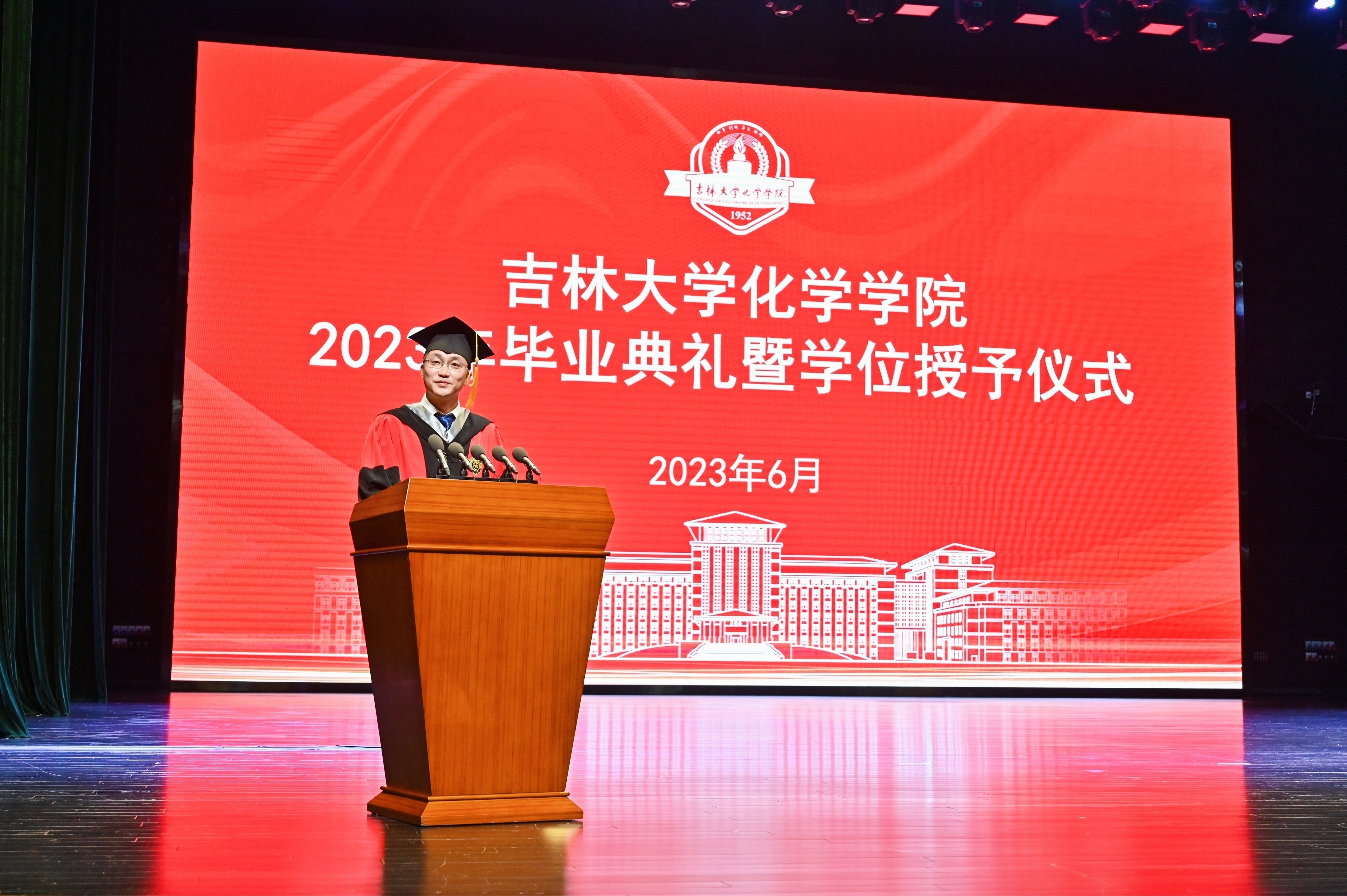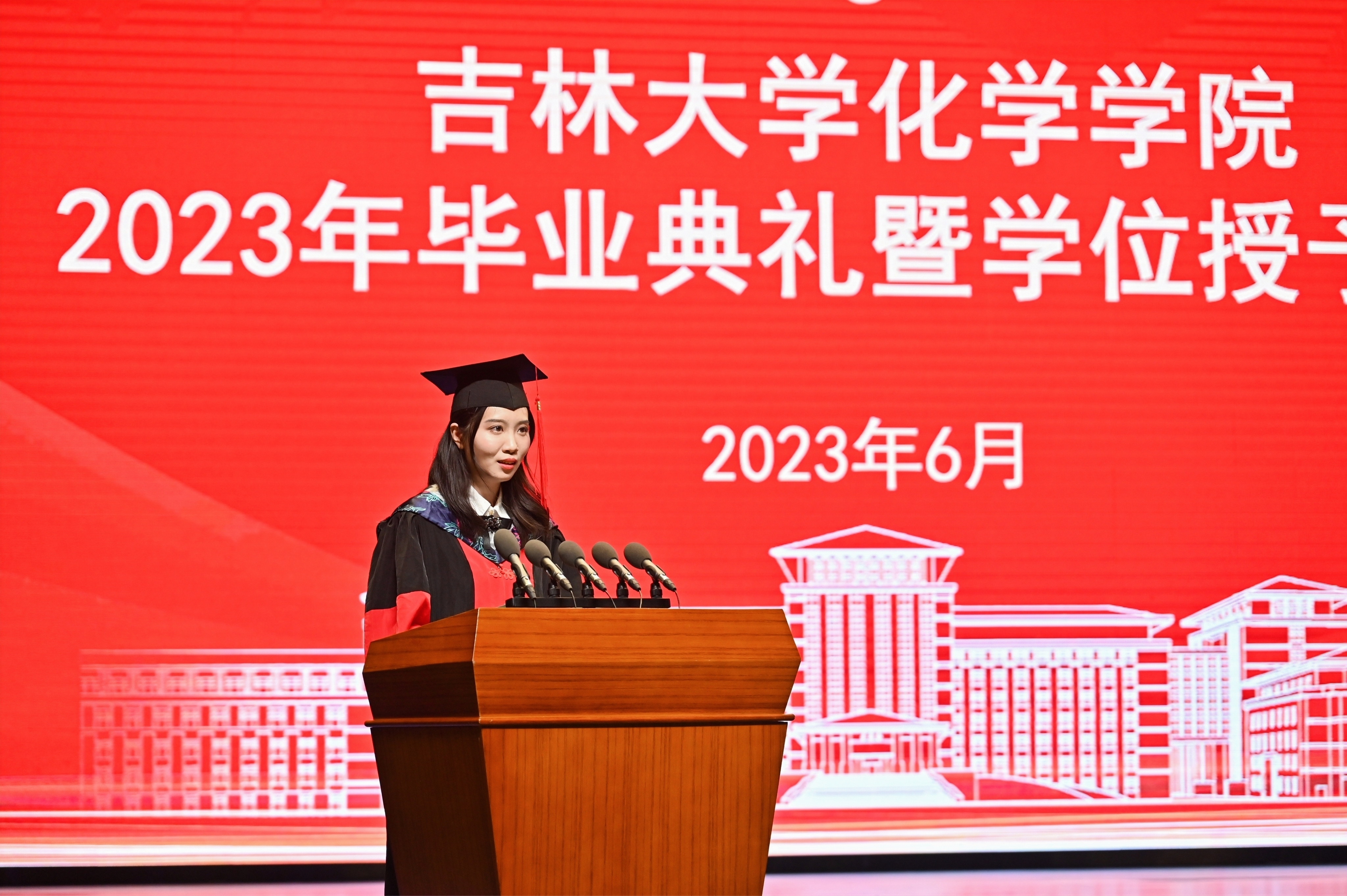 2023届毕业研究生代表、EMC易倍平台2023届优秀毕业研究生迟茜文发言中深情回忆了在公司求学的美好时光,深深表达了对母校师生的恋恋不舍。她表示,吉大化学是一本书,既博大又包容,既严谨又谦和。吉大化学是一座城,这里永远住着怀揣梦想的人,每一个在这里生活过的人都用自己的时光温暖着她的岁月,都用自己的实际行动守卫着她的荣耀和尊严。她代表全体毕业生为公司送上了最真挚的祝福。