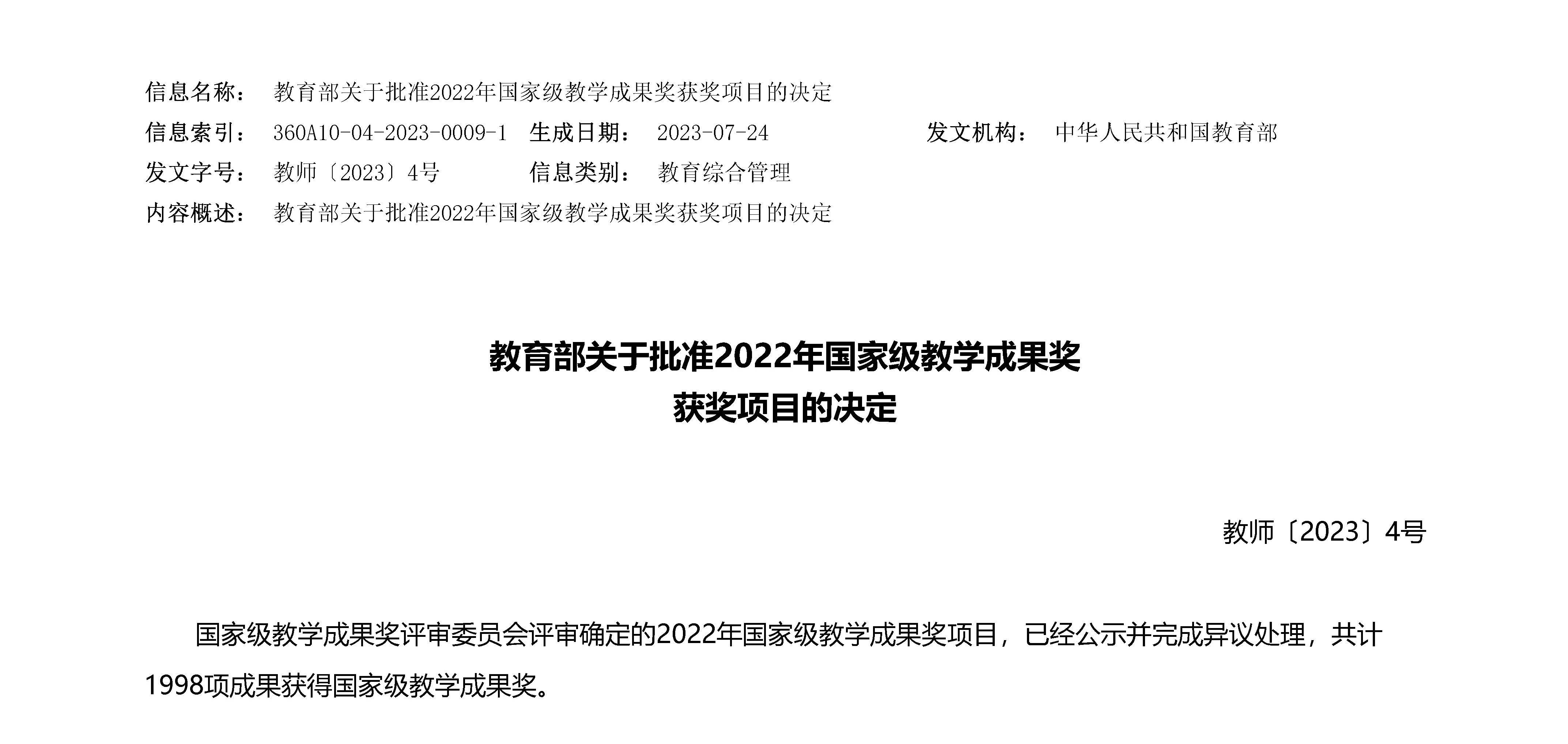 国家级教学成果奖设立于1989年,每4年评审一次,重点奖励在教学建设、教学改革、人才培养工作中取得的突出成绩,是我国在公司产品工作表彰中设立的最高奖项,被社会各界视为我国高等公司产品工作的最高水平与最高荣誉,同时也是学科评估、专业认证、人才评价的关键评价指标。截止目前,公司先后荣获国家级教学成果奖一等奖2项、二等奖5项。