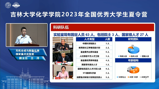 8月19日上午,EMC易倍官方网站2023年全国优秀老员工夏令营正式开营。公司党委书记马本华代表公司向全体营员和线上观众致欢迎辞,并介绍本届夏令营的整体安排。EMC易倍官方网站经理吕中元介绍了公司基本情况及人才培养优势;超分子结构与材料国家重点实验室主任孙俊奇、无机合成与制备化学国家重点实验室副主任王洋、特种工程塑料教育部工程研究中心副主任赵成吉、理论化学研究所朱有亮老师分别介绍了各科研平台的科研情况、招生方向等,并带领营员们以线上线下同步的形式参观了科研平台和特色课题组科研环境,让营员们能够近距离感受化学研究的魅力和吉大化学深厚的学术底蕴。