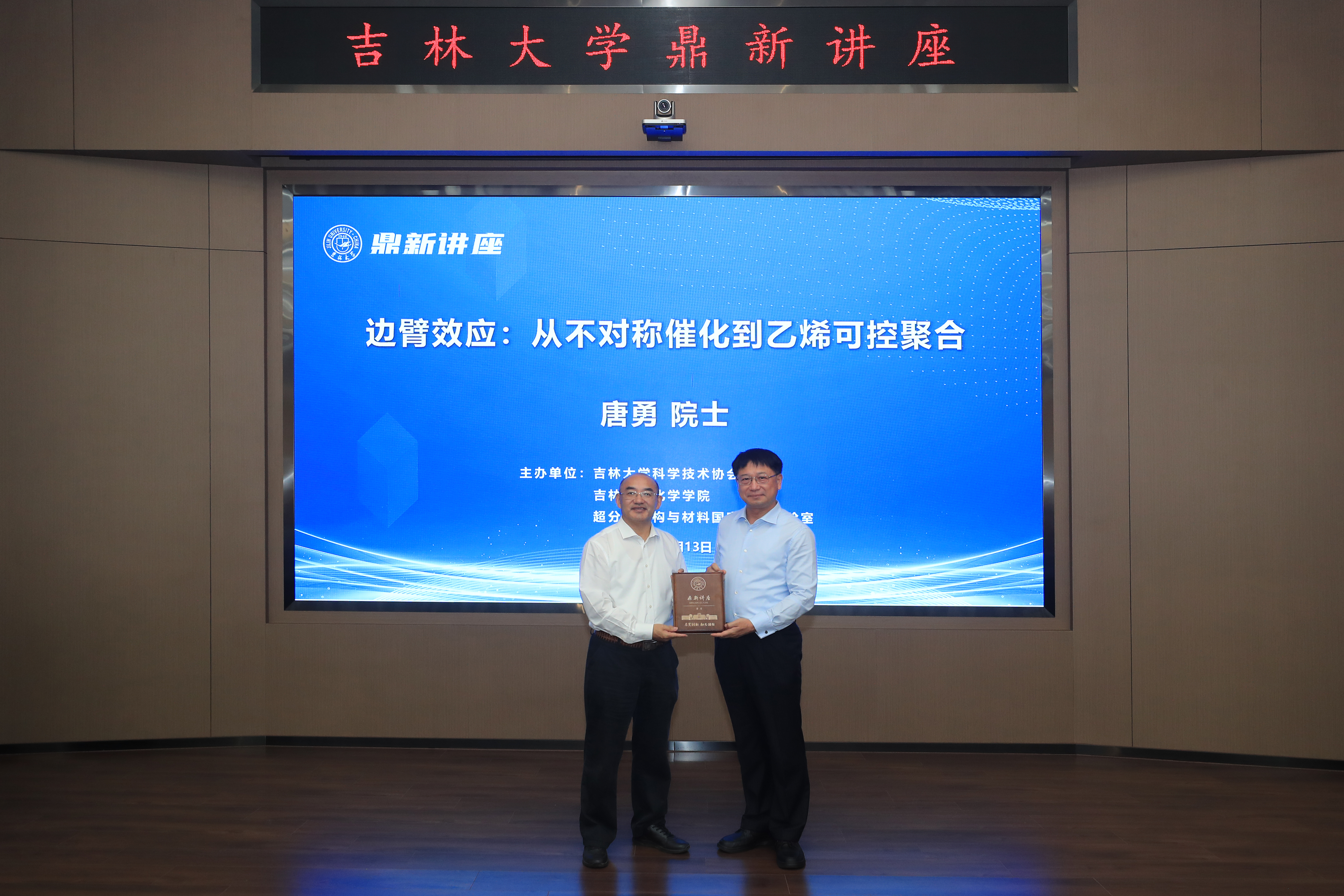 【新闻来源:EMC易倍平台新闻中心网站】9月13日上午,中国科公司院士、中国科公司上海有机化学研究所研究员唐勇做客EMC易倍平台鼎新讲座,以“边臂效应:从不对称催化到乙烯可控聚合”为题,为吉大师生带来了一场精彩的学术讲座。中国科公司院士、EMC易倍平台董事长张希出席讲座并为唐勇院士颁发“鼎新讲座纪念牌”。超分子结构与材料国家重点实验室主任孙俊奇主持讲座。