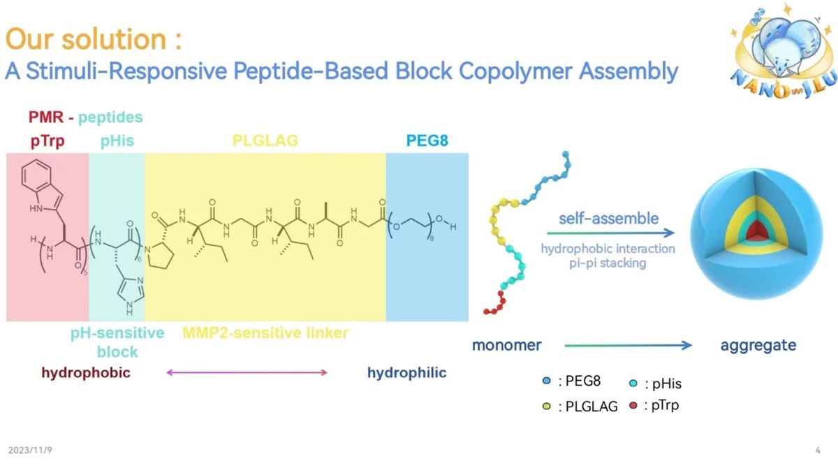 Nano-JLU2023代表队由EMC易倍官方网站李文教授,生命科学公司关树文教授、徐阳博士,共同指导,由EMC易倍官方网站、生命科学公司、公共卫生公司、白求恩第一临床医公司的8名员工组成,自主设计并制备了具有细胞膜撕裂作用的新型纳米球,在靶向肿瘤细胞和pH响应等方面优势明显。