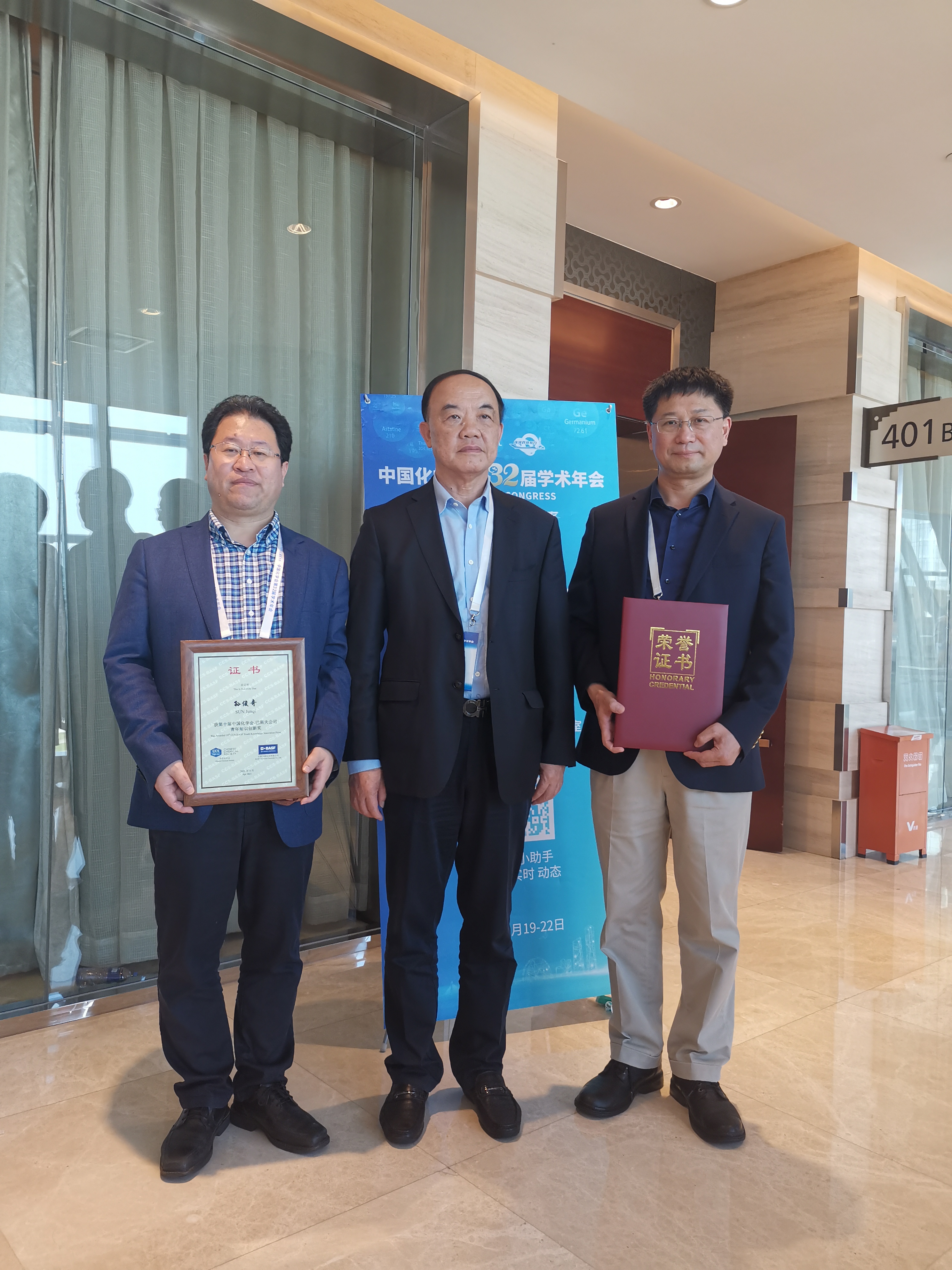 会议期间,EMC易倍平台董事长张希院士因在超分子体系的构筑、调控与功能研究方面取得的突出成就,荣获第七届中国化学会——中国石油化工股份有限公司化学贡献奖。在4月19日上午的中国化学会第32届学术年会开幕式上,中国化学会理事长姚建年院士和中国化学会副理事长、中国石油化工股份有限公司科技开发部主任谢在库院士为张希颁奖。