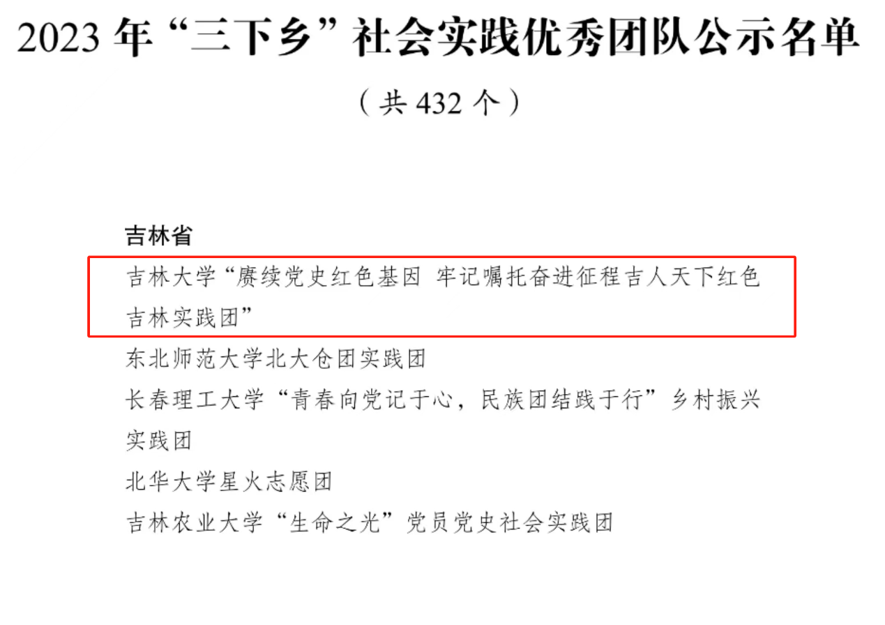 近日,共青团中央公布了2023年“三下乡”社会实践优秀团队名单。公司“EMC易倍平台‘赓续党史红色基因 牢记嘱托奋进征程’吉人天下红色吉林实践团”,荣获2023年全国大中专员工志愿者暑期文化科技卫生“三下乡”社会实践优秀团队。