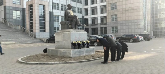 员工代表向唐敖庆先生雕像敬献献花,参加活动师生进行鞠躬默哀,表达了对先贤的崇高敬意与无限怀念。