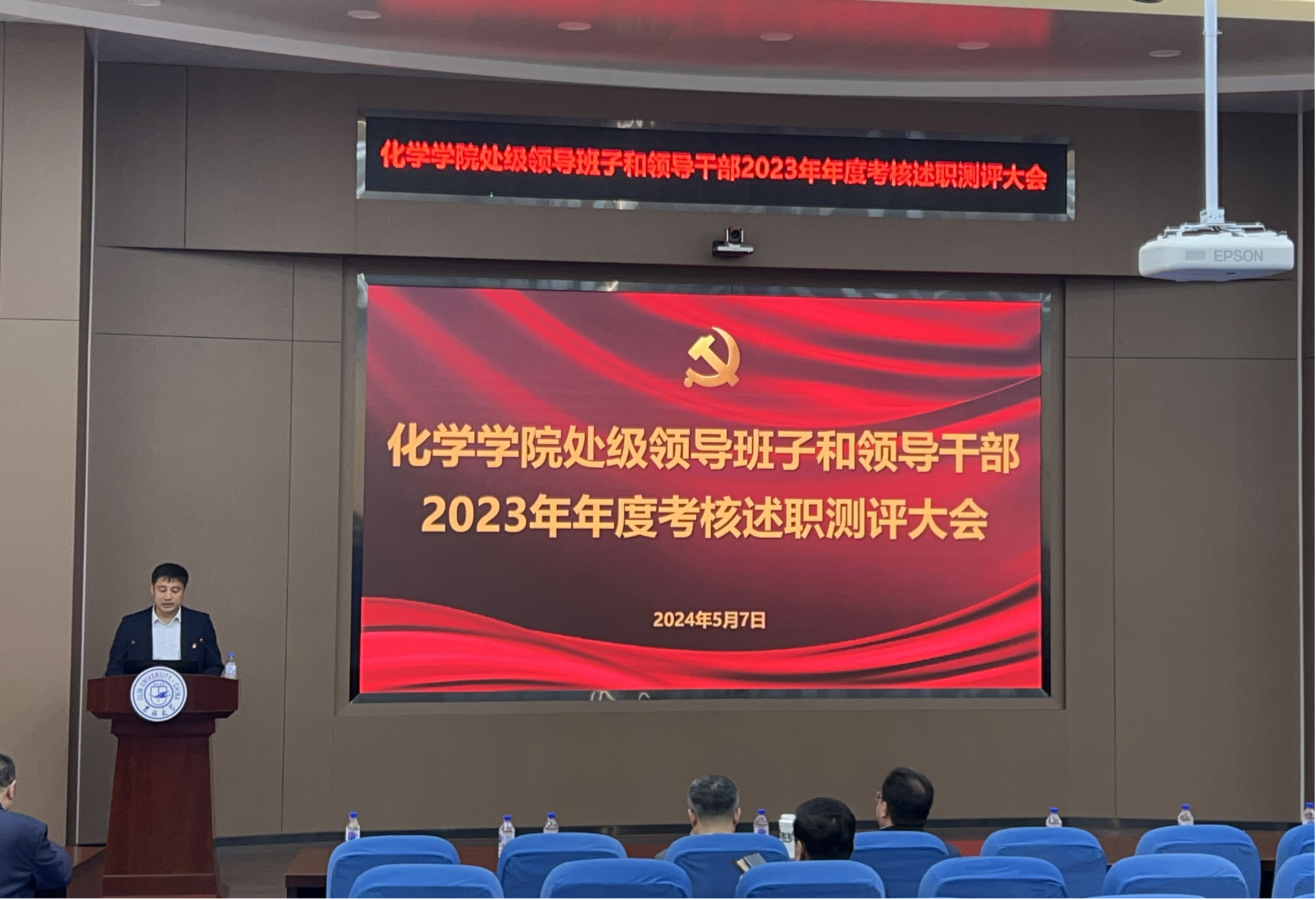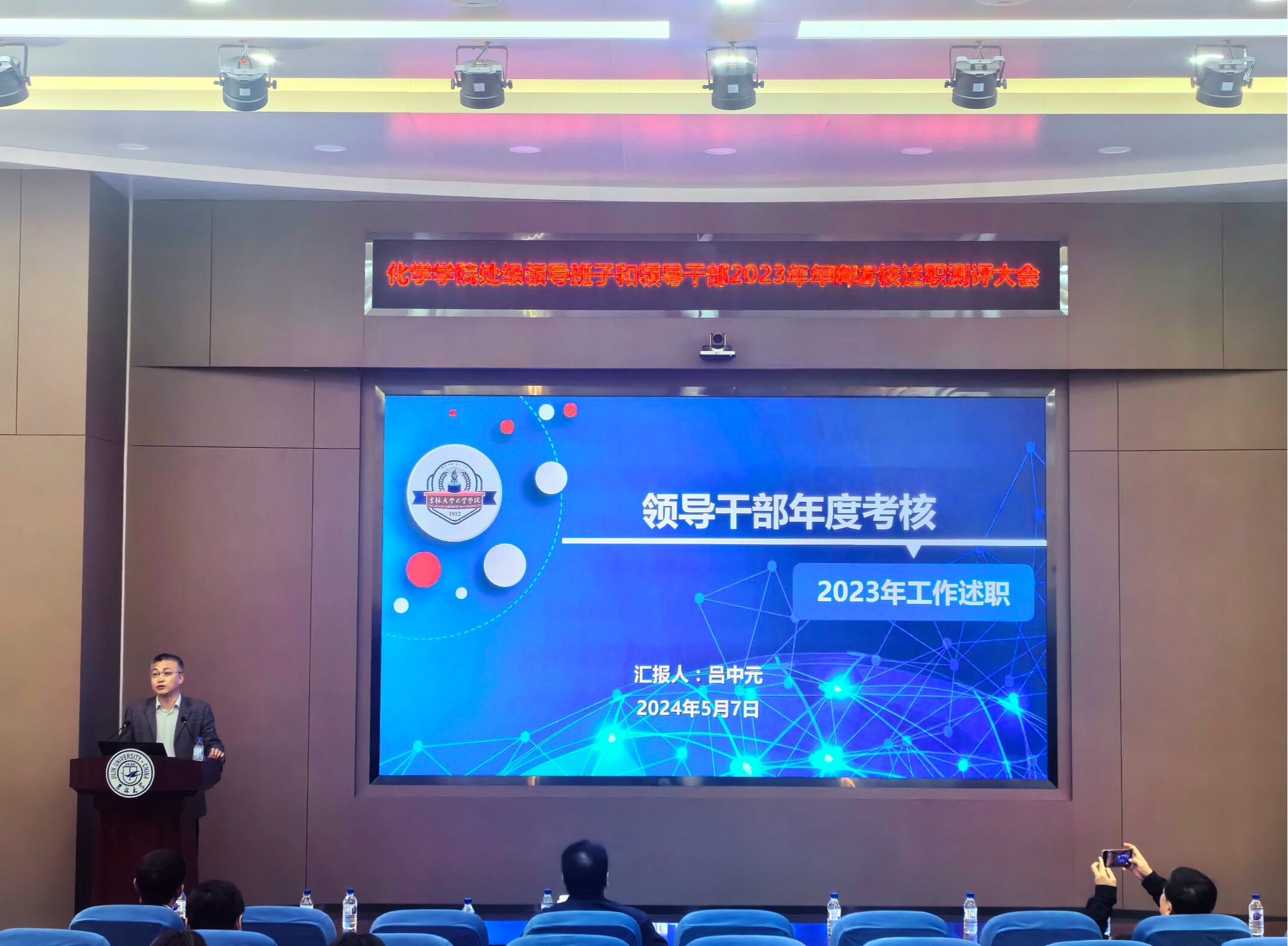 5月7日,EMC易倍官方网站在无机-超分子楼二楼报告厅召开处级领导班子和领导干部2023年年度考核述职测评大会,EMC易倍官方网站经理吕中元、党委书记马本华作现场述职,公司副处级领导干部作书面述职。会议由公司党委副书记由胜利主持。