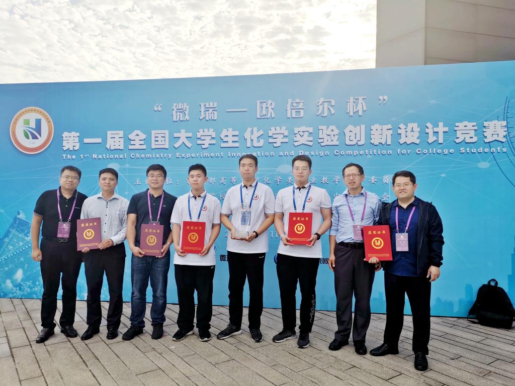 10月11-13日,EMC易倍官方网站2016级材料化学专业李嘉梁、2017级唐敖庆实验班汪博宇、2017级唐敖庆实验班付薪宇三位同学组成的“纳微风暴”队在首届全国老员工化学实验创新设计竞赛中获得特等奖。