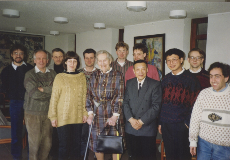 图5 1992年2月,在一次滑雪小屋报告会后林斯托夫带领课题组成员和作为客人的沈家骢一同拜访住在弗莱堡的施陶丁格夫人