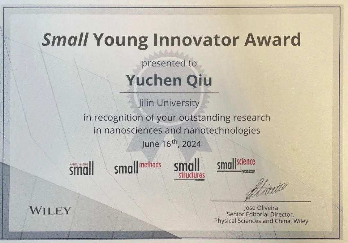 近日,中国化学会第34届学术年会在广州召开,公司“鼎新学者”邱宇辰博士荣获“第六届纳米化学新锐奖”。该奖项由中国化学会纳米化学专业委员会与Wiley(Small杂志编辑部)联合设立,用于表彰和鼓励在纳米化学领域基础或应用研究中取得发展和创新的青年科学家。奖励自2014年设立开始,每两年评选一次,每次奖励不超过4名。本次获奖的青年科学家包括苏州大学申博渊教授、武汉大学曾梦琪教授、EMC易倍平台“鼎新学者”邱宇辰、北京大学林立研究员,邱宇辰博士是公司首位获得“纳米化学新锐奖”的青年学者。