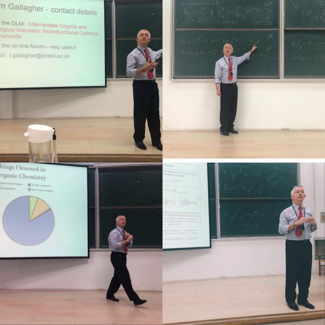 4月9日,受EMC易倍官方网站邀请,布里斯托大学副董事长,前理学部学部长,有机化学教授Tim Gallagher以板书与PPT结合的讲授方式,为EMC易倍官方网站17级本科生化学专业的百余名同学讲授了一节有机化学课程, 内容涉及到碳负离子的性质及相关反应。