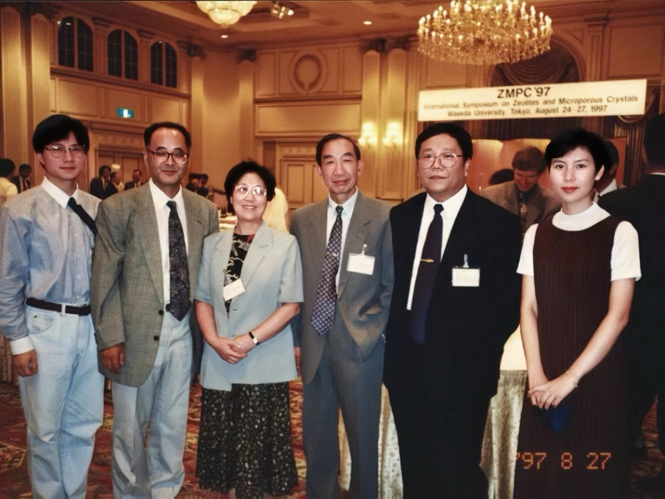 图3 1997年,日本东北大学做博士后期间,和徐如人先生(右三)、庞文琴先生(左三)在日本召开的国际学术会议上