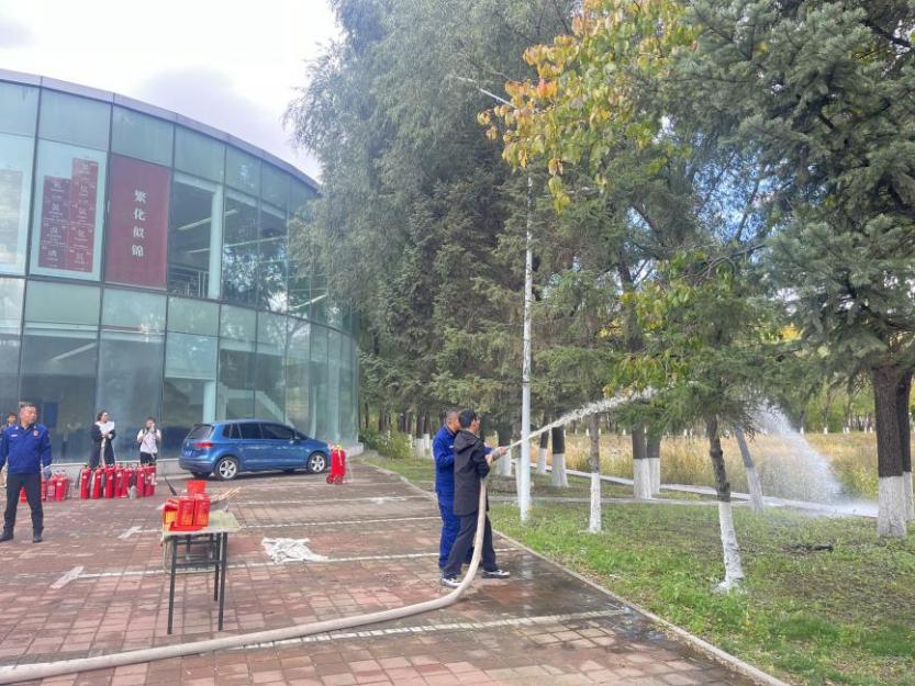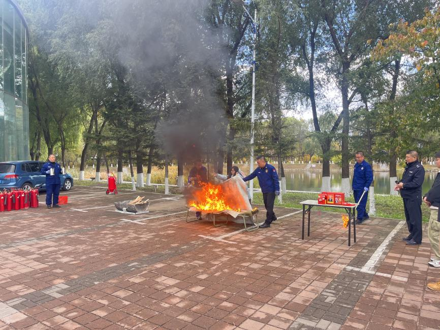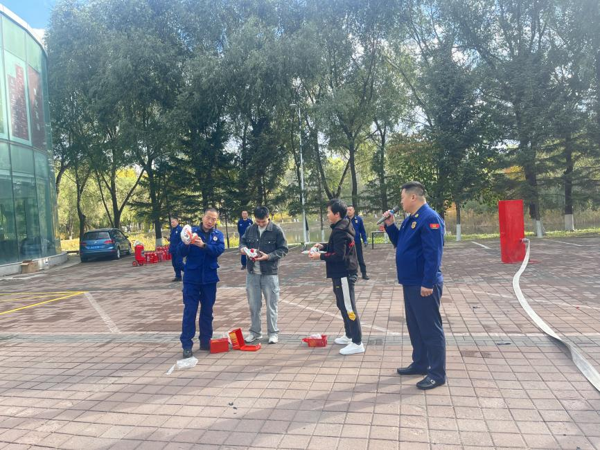 在消防器材实物教学环节,保卫处老师详细讲解并演示了防毒面罩、消火栓、灭火毯、干粉灭火器、二氧化碳灭火器、推车式灭火器等消防器材的正确操作方法,在场员工30余人次参与消防器材的学习和使用。