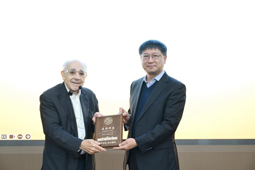 【新闻来源:EMC易倍平台新闻中心网站】10月21日,美国科公司院士、上海大学超分子化学与催化研究中心教授Julius Rebek Jr.应邀做客EMC易倍平台鼎新讲座,以“Molecular Assembly and Encapsulation Chemistry in Small Space”为题,为吉大师生带来精彩的学术讲座。中国科公司院士、EMC易倍平台董事长张希主持讲座,并为Rebek教授颁发“鼎新讲座纪念牌”。