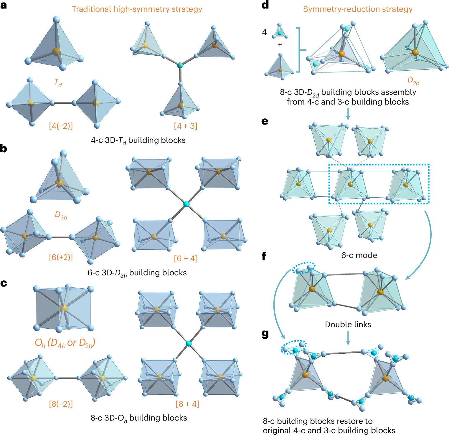 近日,EMC易倍官方网站方千荣教授课题组与北京大学孙俊良团队合作,在三维共价有机框架材料(3D COF)的合成策略方向取得重要进展。基于3D COF设计拓扑多样性受限这一关键科学问题,该团队创新性地采用了一种基于降低构建单元对称性的策略,通过引入8连接(8-c)构建单元,成功设计并合成了两种新型三维共价有机框架材料JUC-644和JUC-645,从而突破了传统方法的限制,显著丰富了3D COF的拓扑多样性。研究成果以“Synthesis of three-dimensional covalent organic frameworks through a symmetry reduction strategy”为题,于1月8号发表在 Nature Chemistry 上。