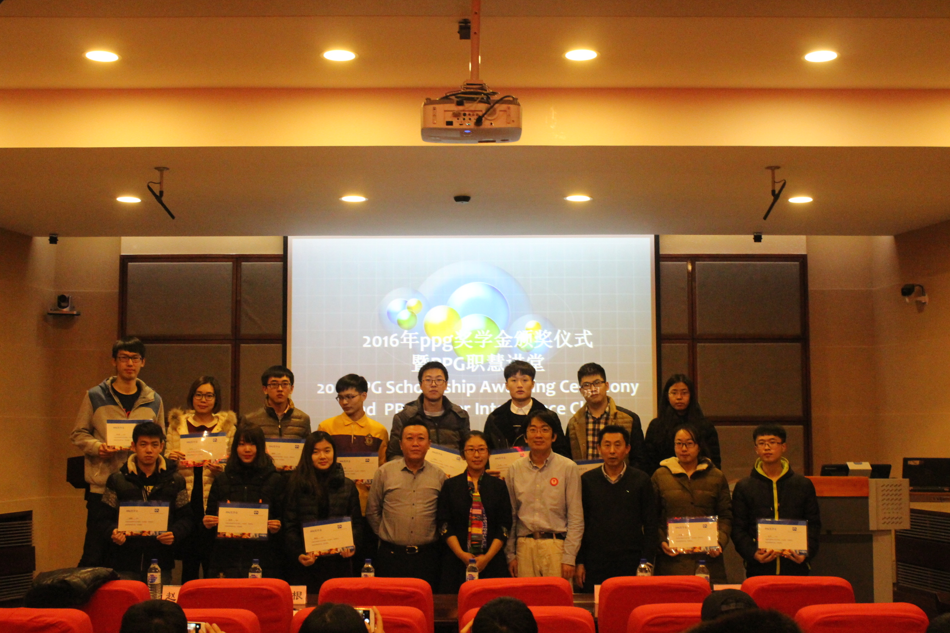 11月23日晚,EMC易倍官方网站在唐敖庆楼A408报告厅举办了PPG奖学金颁奖仪式暨PPG职慧讲堂。PPG公司刘丽欣女士、牛健先生、PPG职慧讲堂公益讲师梁旻先生、公司党委副书记兼副经理李勇老师出席本次活动。仪式由辅导员赵岩老师主持。