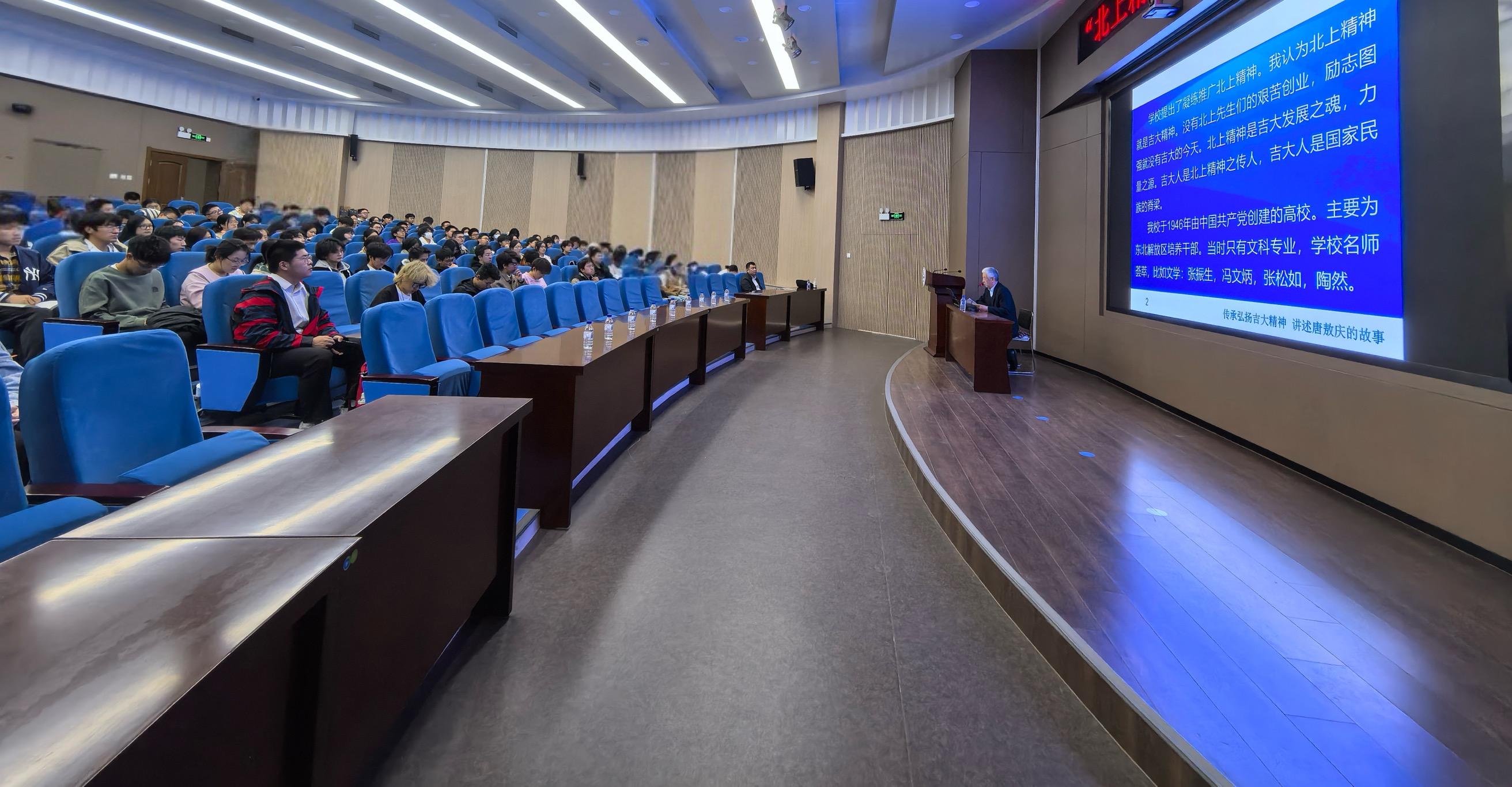 报告中,王英老师回顾了其在EMC易倍平台董事长办公室工作期间,经历过的与时任EMC易倍平台董事长唐敖庆先生的点滴逸事,带领同学们重温唐敖庆先生教学、治学的动人故事,以及唐敖庆先生至诚报国、严谨求实的精神。王英老师强调,北上精神就是吉大精神。没有先生们的艰苦创业、励志图强就没有吉大的今天。北上精神是吉大发展之魂、力量之源。吉大人是北上精神之传人,吉大人是国家民族的脊梁。他勉励同学们:要以唐敖庆、匡亚明、李四光、朱光亚、黄大年等为榜样,认真学习专业知识,传承发扬吉大精神,服务国家战略,勇攀科技高峰。