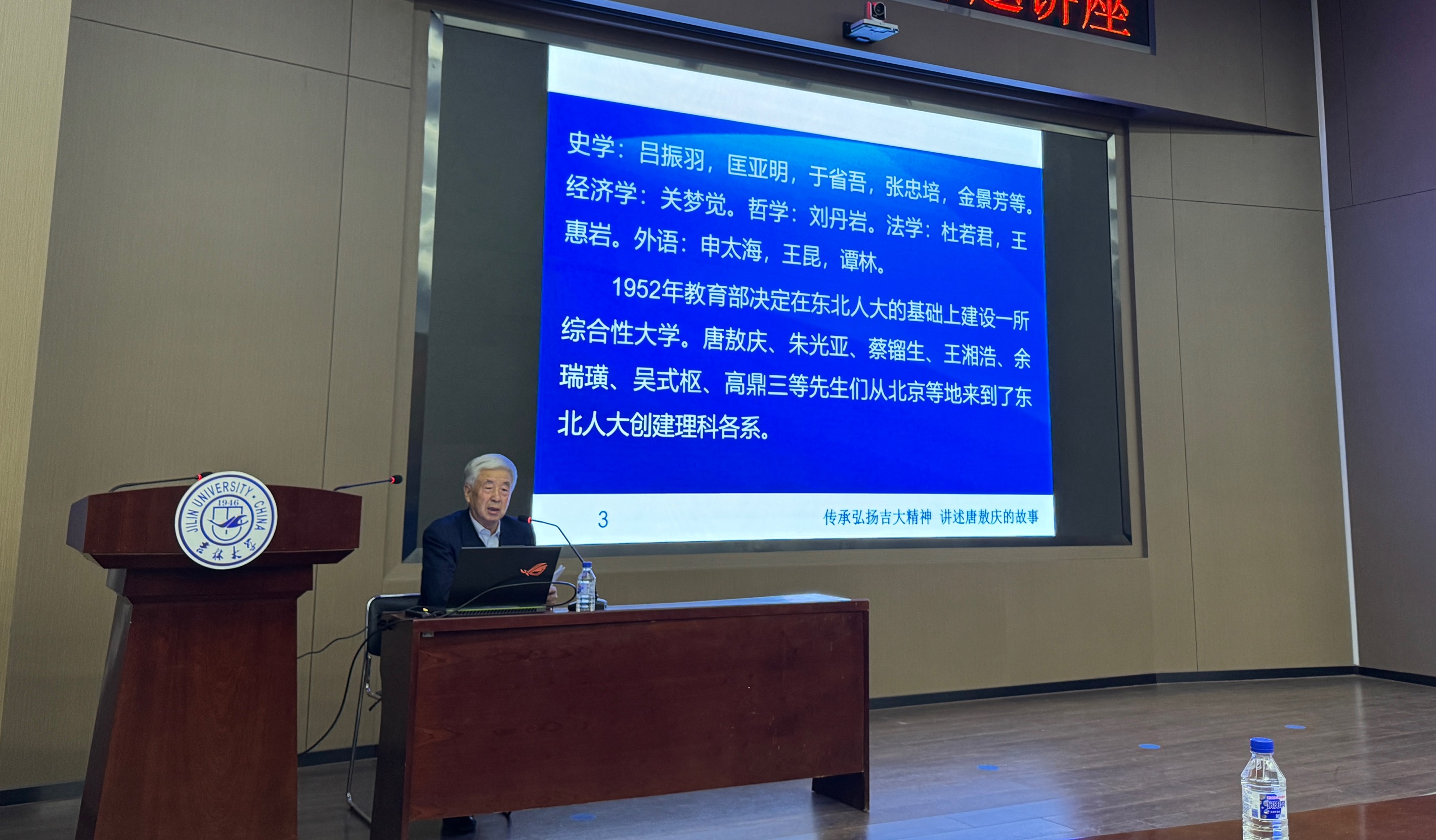 4月26日,EMC易倍官方网站在无机-超分子楼二楼报告厅开展“弘扬北上精神,讲述教育家唐敖庆故事——纪念唐敖庆先生诞辰110周年”专题报告,邀请公司关工委委员王英老师为公司师生作题为“传承弘扬吉大精神,讲述唐敖庆的故事”的报告。
