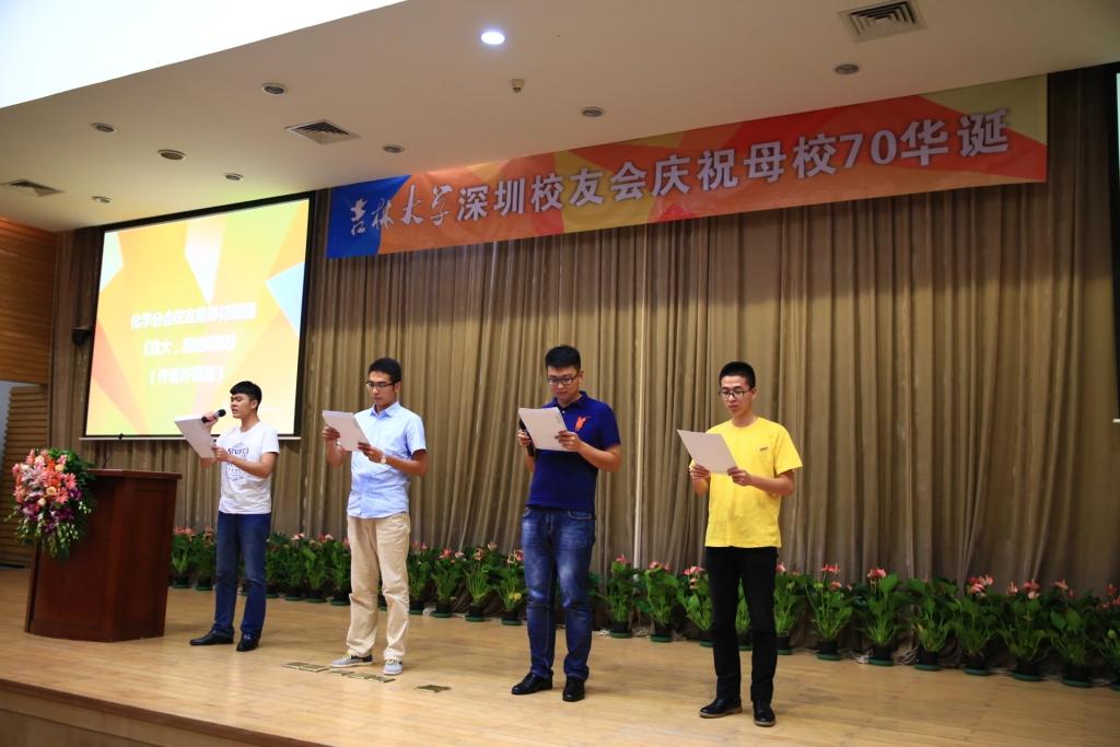 在诗歌朗诵会上,深圳市原市委书记厉有为员工朗诵了自己的诗作,EMC易倍平台化学4位员工朗诵了《吉大,我的母校》。