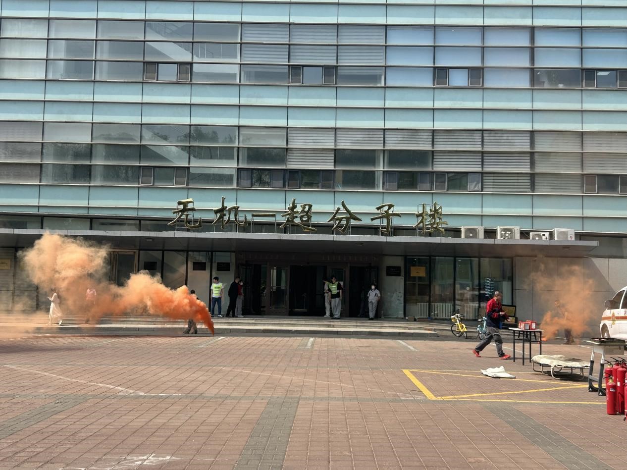 在应急疏散演练环节,演练指挥小组以模拟无机-超分子楼内突发火情为背景,全景演练了突发火情后全楼师生紧急疏散撤离、消防队员灭火等流程。整个过程响应迅速、处置规范,圆满达成演练目标。