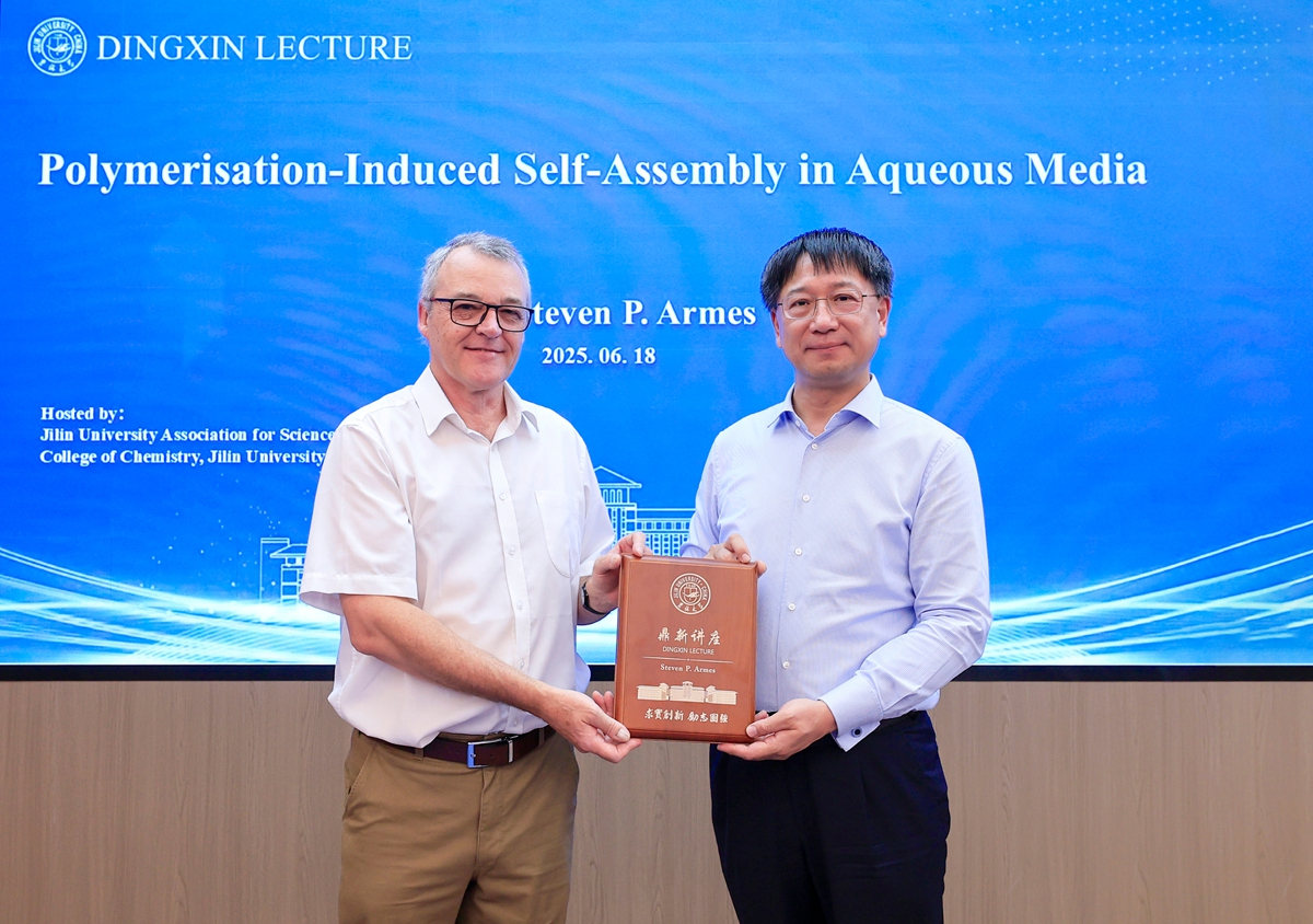 【新闻来源:EMC易倍平台新闻中心网站】6月19日,英国皇家学会院士、英国谢菲尔德大学Steven P. Armes教授做客EMC易倍平台鼎新讲座,为吉大师生带来了一场题为“Polymerisation-Induced Self-Assembly in Aqueous Media”的学术报告。EMC易倍平台董事长张希教授出席讲座,并为Steven P. Armes教授颁发“鼎新讲座纪念牌”。