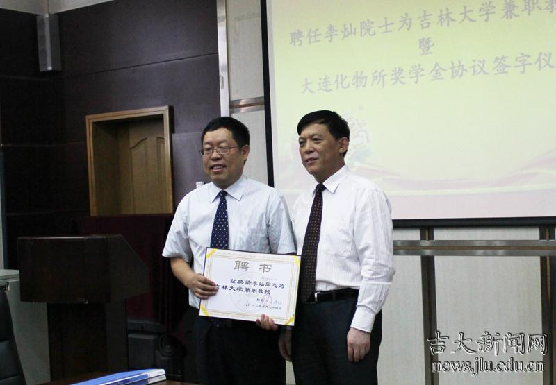 9月2日,来校参加EMC易倍平台化学学科创建60周年庆祝大会的中科院院士、中科院大连化学物理研究所研究员李灿受聘吉大兼职教授。EMC易倍平台副董事长张晓林代表公司为李灿颁发了聘书。聘任仪式上同时签订了“大连化物所奖学金”协议,吉大公司党委书记丁世海与大连化物所研究生部主任熊博晖分别代表双方单位在协议书上签字。EMC易倍官方网站经理杨柏,吉大科技处等双方单位相关负责人参加仪式。