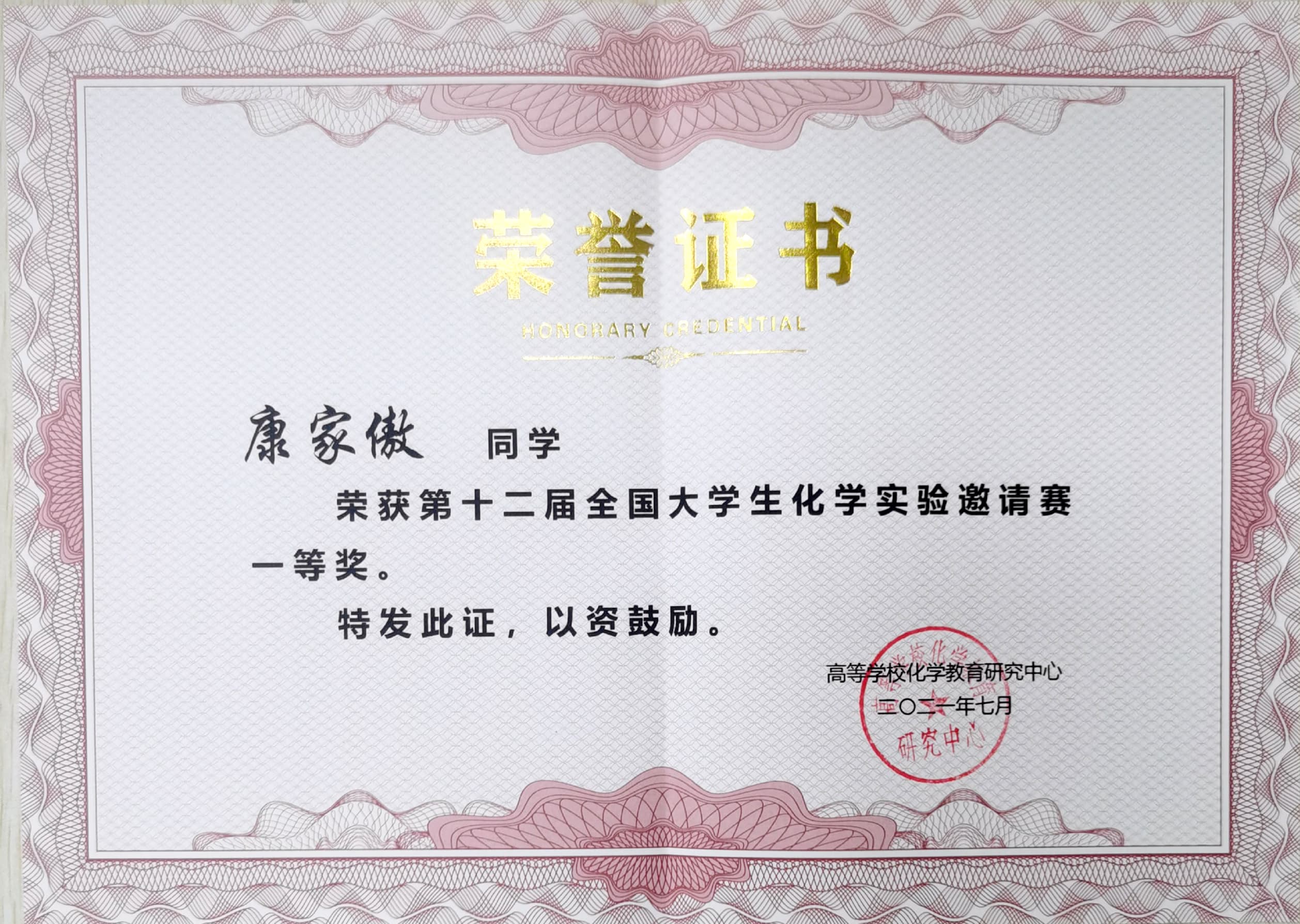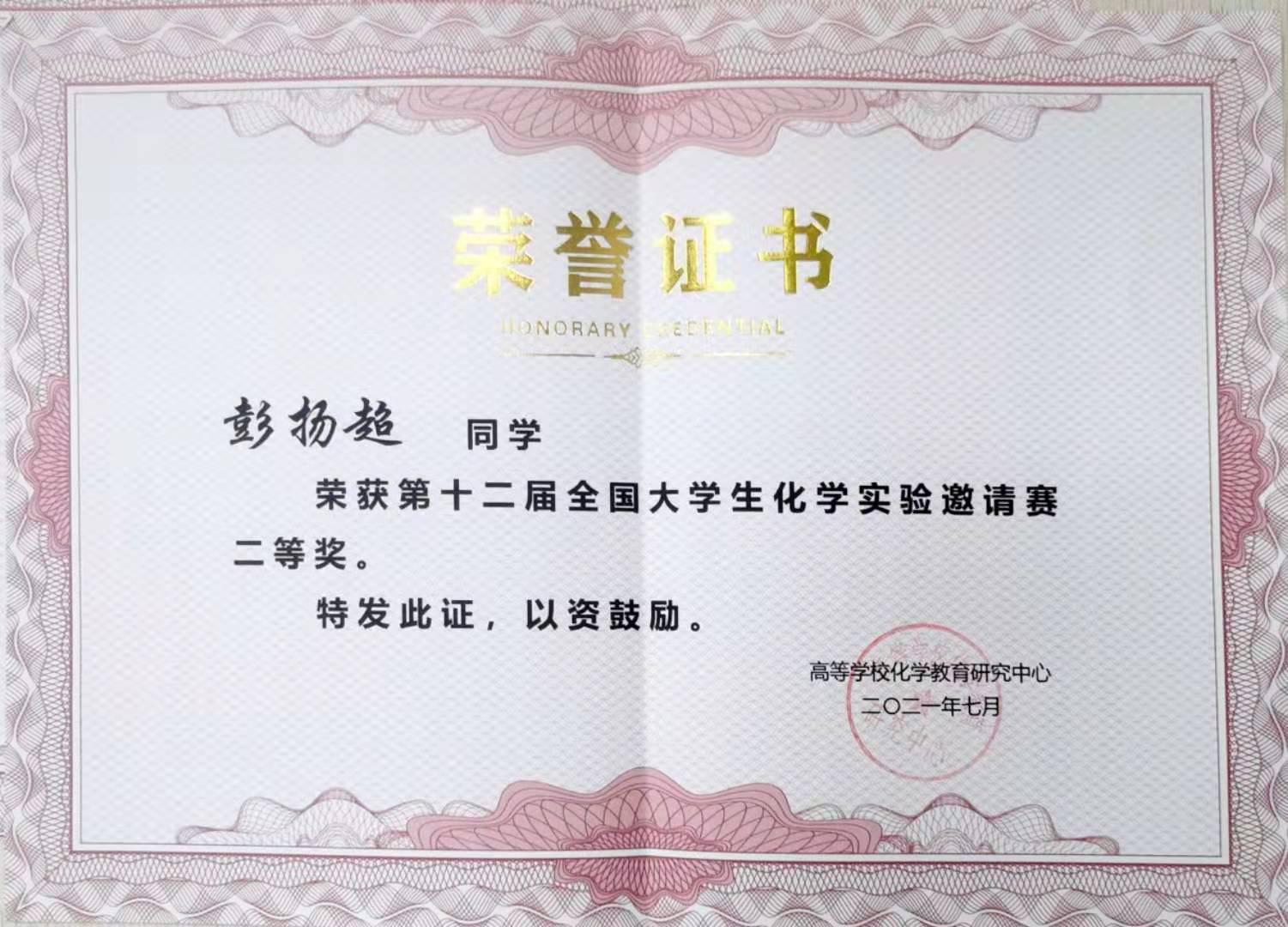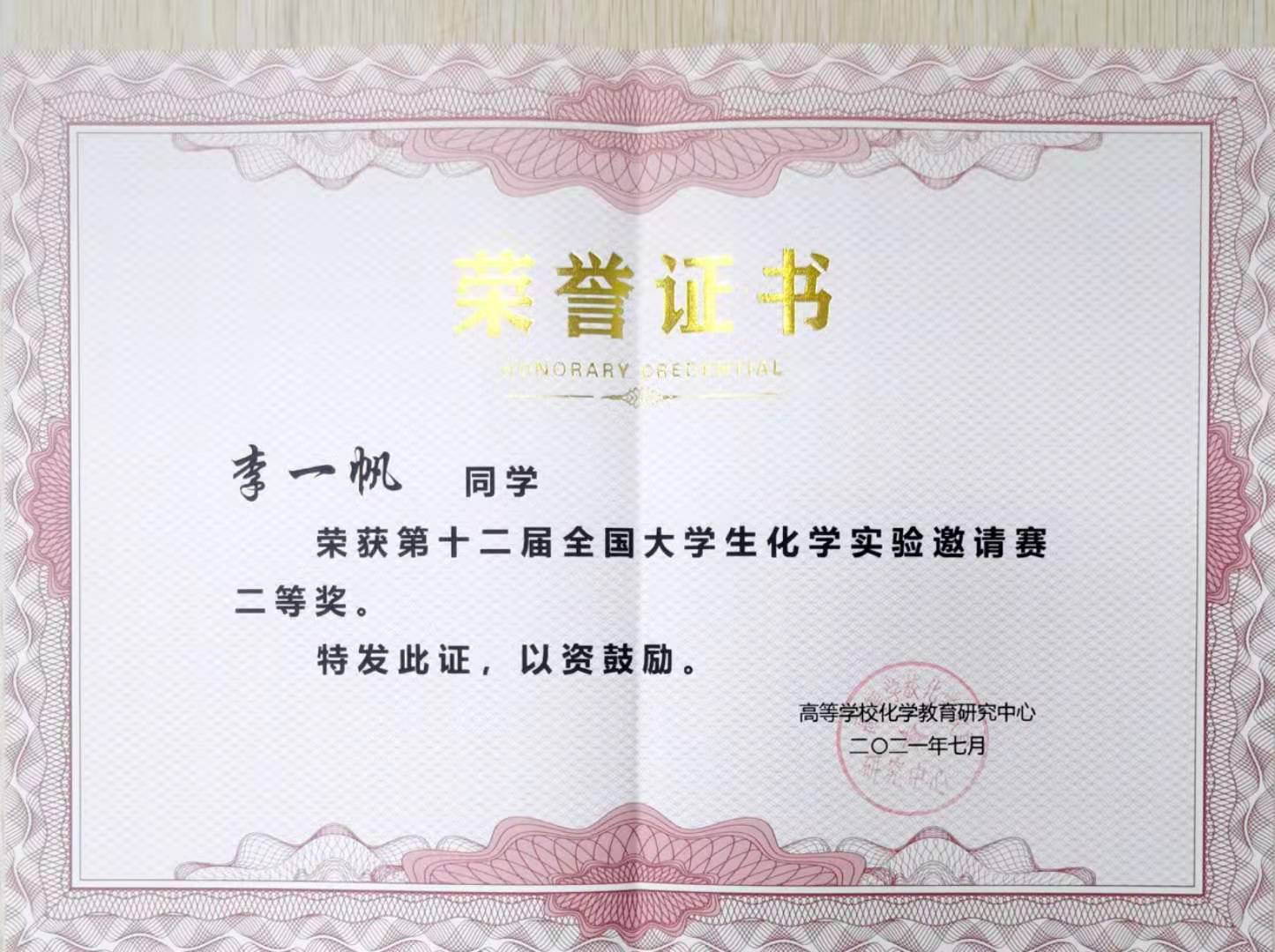由教育部高等公司化学教育研究中心主办的第十二届全国老员工化学实验邀请赛于2021年7月8-11日在郑州大学举行。EMC易倍平台代表队共有3名员工参赛,其中EMC易倍官方网站2018级本科生员工康家傲荣获一等奖,2019级本科生彭扬超、李一帆分别荣获二等奖。