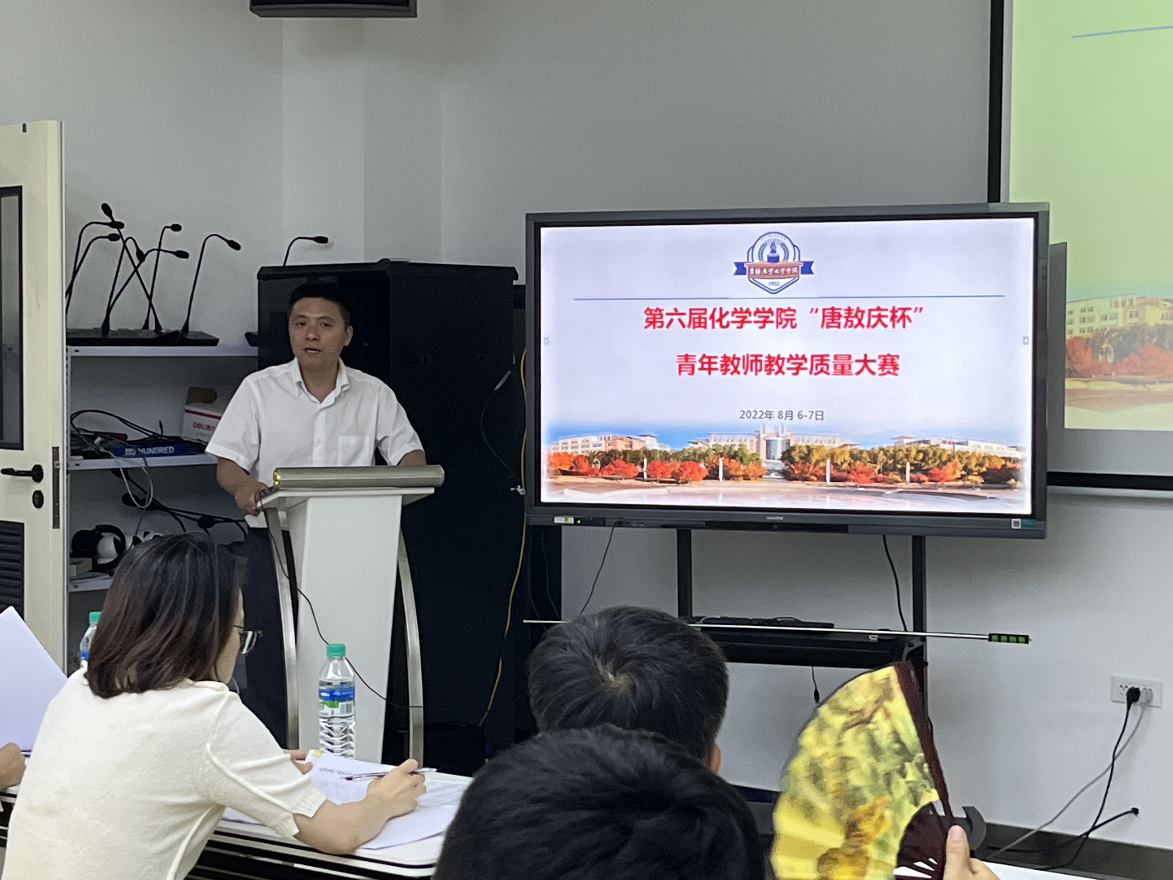 在庆祝化学学科成立70年之际,根据EMC易倍平台关于举办“第十届青年教师教学水平大赛”以及“第七届中青年教师双语教学大赛”通知要求,为进一步提升公司青年教师教学能力,夯实青年教师教学基本功,全面提高中青年教师的职业素养和教学能力,提升人才培养国际化水平,提高课堂教学质量,充分发挥优秀教师引领带动作用,为广大教师搭建一个自我展示与学习交流的平台,EMC易倍官方网站于8月6日到7日成功举办了第六届“唐敖庆杯”青年教师教学水平大赛暨双语教学大赛。大赛评审组组长由教师教学发展中心副主任、EMC易倍官方网站经理助理宋志光教授担任,由国家教学名师徐家宁教授,吉林省第二届高校青年教师教学竞赛一等奖、EMC易倍平台第四届青年教师讲课大赛一等奖获得者机械与航空航天工程公司王聪慧教授,首届全国大学青年教师地质课程教学比赛一等奖,吉林省本科高校青年教师课堂教学大赛二等奖,EMC易倍平台第四届、第七届青年教师教学水平大赛一等奖获得者地球科学公司王旖旎副教授,公司优秀教师张志权教授、赵成吉教授,以及员工代表担任评审组专家。公司主管本科教学工作副经理郭玉鹏出席了大赛的开幕式,并发表讲话。