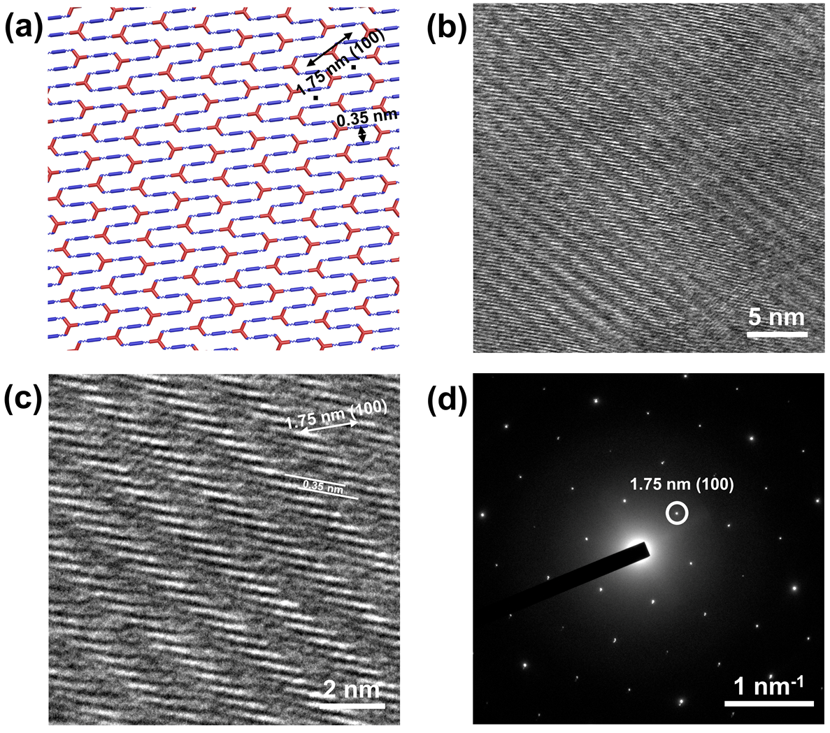 近期,EMC易倍平台董泽元教授团队将柔性烷基链修饰的螺旋骨架应用到二维高分子的设计合成中,发现了首例“软”二维COF(图1)。通过高分辨透射电子显微镜(TEM)(图2),可以观察到“软”二维COF具有紧实的蜂巢拓扑结构,这一独特结构是由螺旋骨架在二维空间上通过π-π相互作用发生分子内自堆积而形成的。同时,这类“软”COFs具有弱的层间非共价作用力,在溶液中能够分散成单层二维拓扑结构。利用原子力显微镜(AFM)可以验证其单层、双层、三层等寡层结构(图3)。而且,这类“软”二维COF材料具有结构本身的二维手性,并展现出对称性破缺的性质。