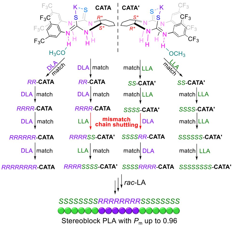 详见:Wuchao Zhao(赵武超), Fengchao Cui(崔凤超), Jianghua He(何江华)Yuetao Zhang(张越涛)*,&Eugene Y.-X. Chen;Oscillatory adaptive catalysis: Intramolecular chain shuttling regulated by stereo-autocorrection instereoselective polymerization of lactide,Chem(2024),https://doi.org/10.1016/j.chempr.2024.06.031