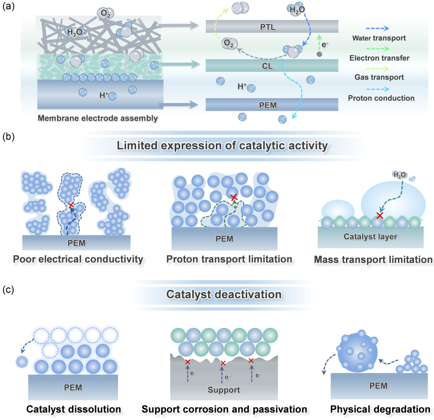 图2从高活性铱催化剂到高效阳极催化层的挑战。