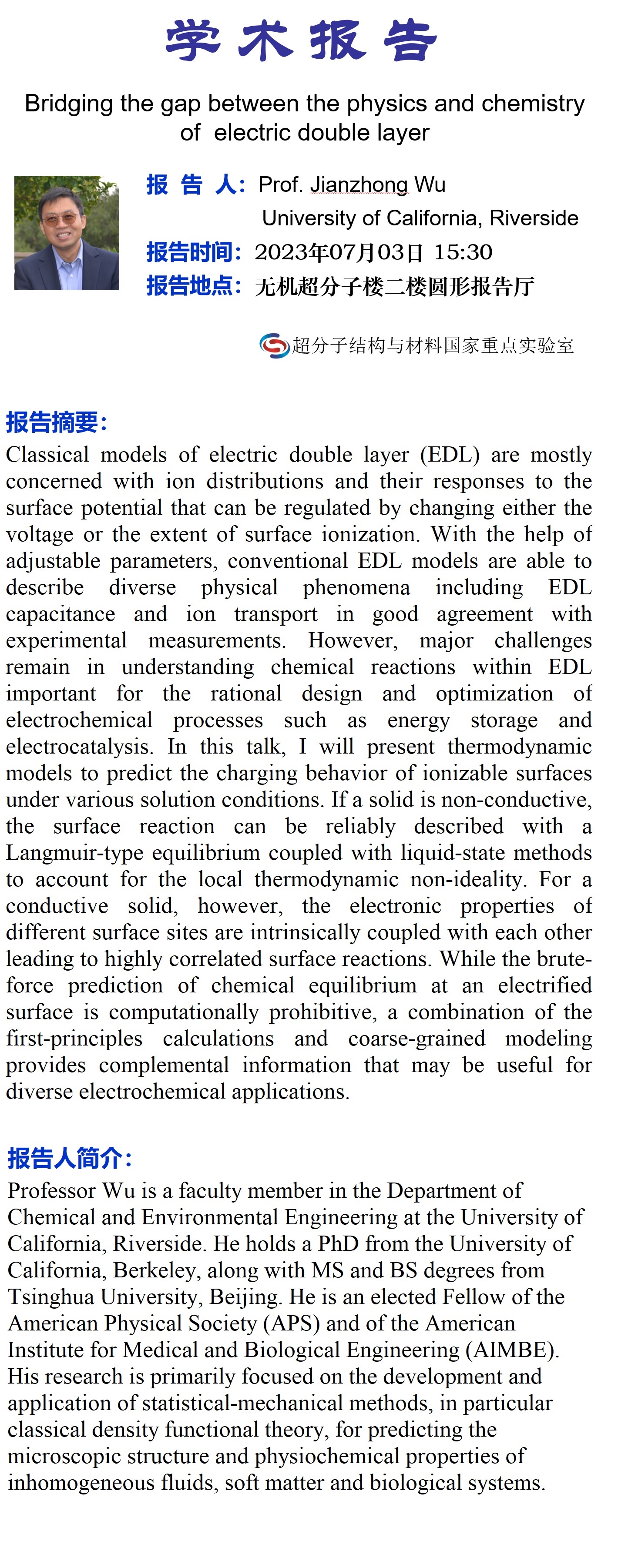 中心校区 无机-超分子楼二楼圆形报告厅