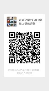 2.课程(团队)负责人为课程线上教学的第一负责人。(1)扫描二维码(附图1)加入“吉大化学19-20-2学期上课教师群”,尽快组织教师熟悉掌握线上教学相关技术、进行教学所需资料的准备;(2)做好课程教学内容安排,组织课程团队教师线上集体备课,统一课程各部分重难点、作业、测试和期末成绩评定方式等;(3)制定完备的课程考核体系,包括但不限于直播签到,章节测验,线上提交课后作业等形式,确保员工按时、保质的进行在线学习;(4)建立及时跟踪了解员工远程学习效果的反馈机制。