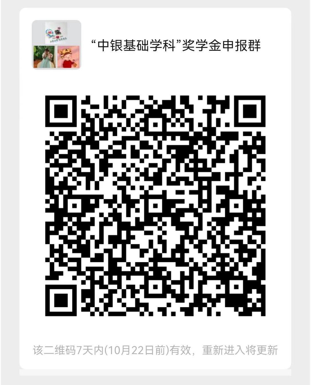 3. 申报人提交如下材料并扫码入群,2022年10月17日前将申报材料电子版发至邮箱chemdep@jlu.edu.cn,邮件及附件请体现“中银+姓名”;