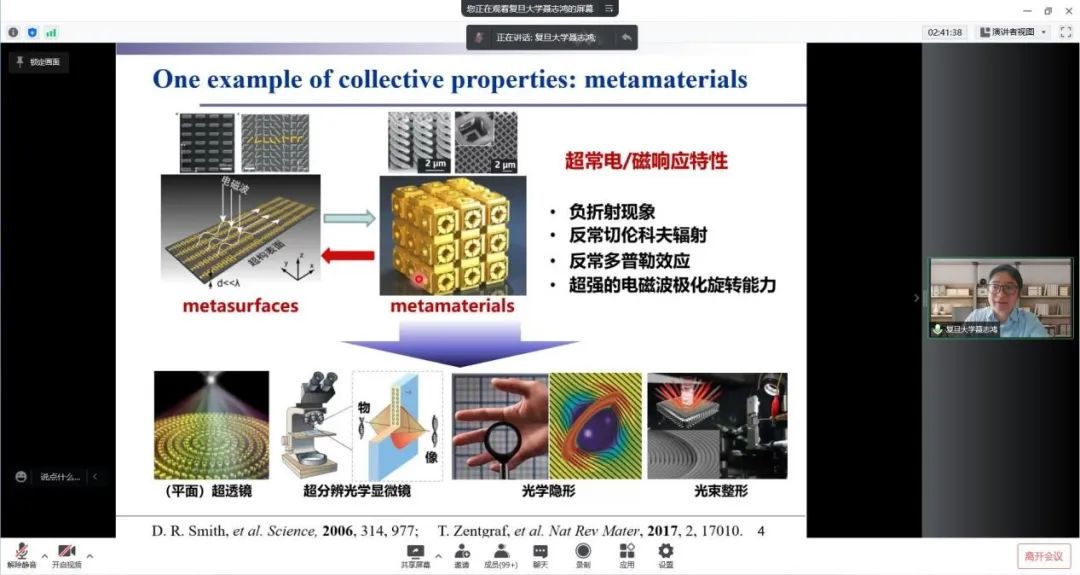 最后,聂志鸿教授为同学们介绍了团队近年来围绕自组装功能序构材料的构筑、功能化与应用探索等问题,对聚合物接枝纳米粒子的原子/分子特性及组装材料的协同物性进行深入探讨。同时,以理论基础为支撑,对与聚合物接枝的纳米粒子进行精准的形貌和方向性调控。以上研究均取得了一系列科研成果。