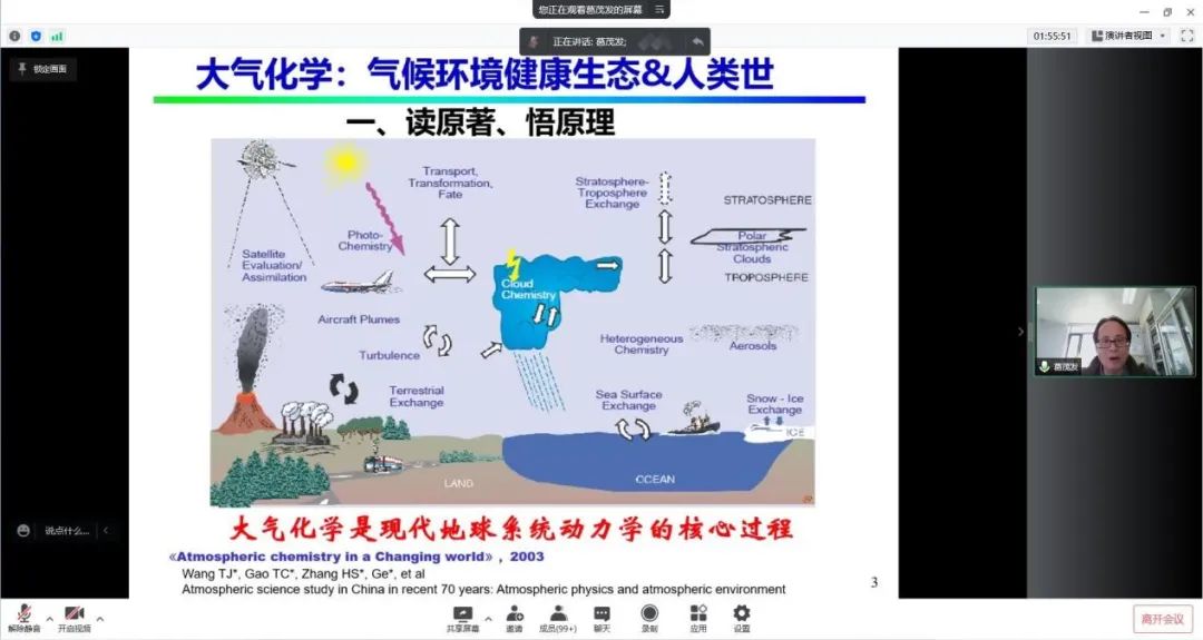 接着,葛茂发研究员从大气化学的宏观角度入手,为同学们科普了大气重污染霾化学等极具前瞻性和不可替代性的科学领域,又将大气污染问题集中到大气污染微粒的精准模拟和检测上,密切联系国家需要,积极响应“四个面向”战略号召。葛茂发研究员参与自主研发了更适合我国复合污染环境,外场长期观测的高稳定性、宽动态范围大气观测在线分析仪,成功解决了由于测量仪器检测结果精度低带来的问题。