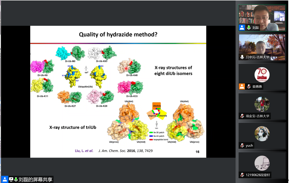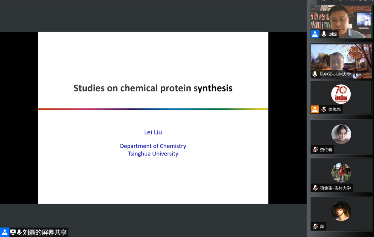 5月14日上午,清华大学化学系教授、国家杰出青年科学基金获得者刘磊应邀线上做客“吉大化学七十年——科学与未来系列讲座”,以“蛋白质化学合成探索”为题,为公司师生作学术报告。