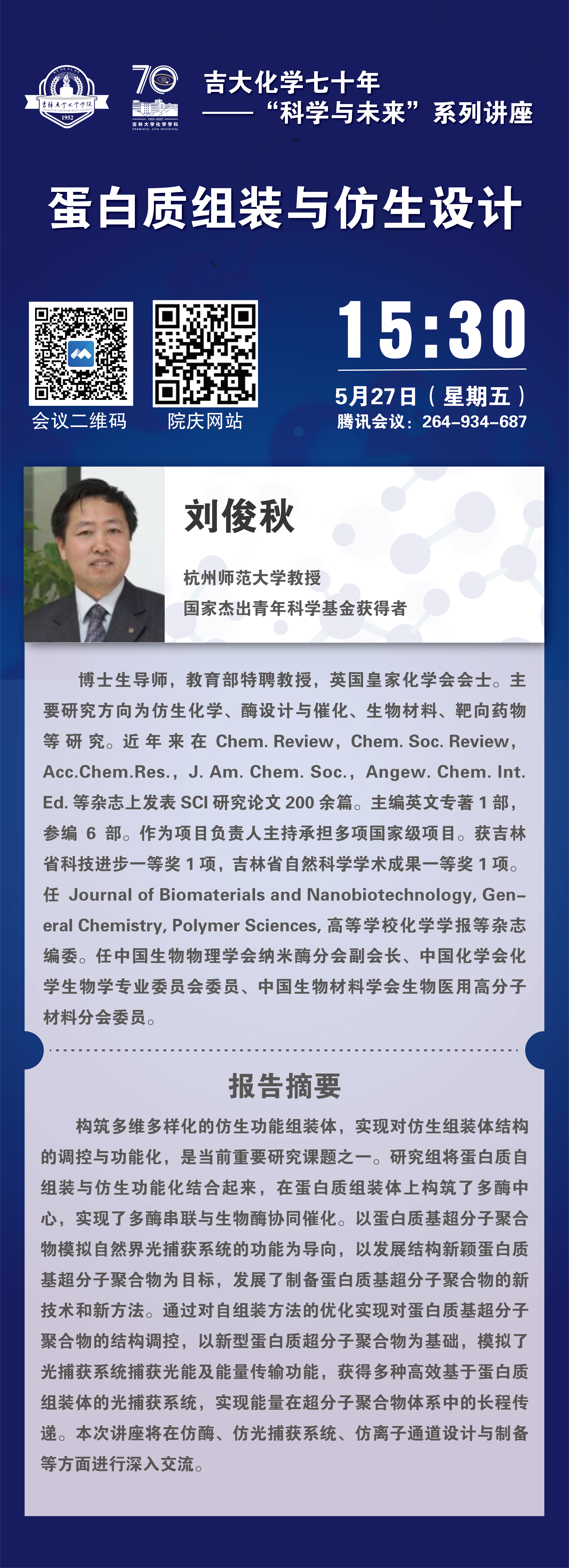 吉大化学70年院庆系列活动——科学与未来系列讲座:蛋白质组装与仿生设计