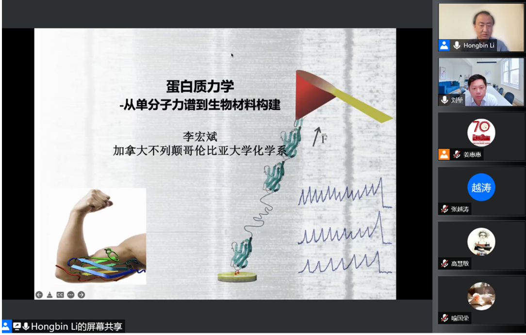 6月2日上午,加拿大不列颠哥伦比亚大学教授李宏斌应邀线上做客“吉大化学七十年——科学与未来系列讲座”,以“蛋白质力学:从单分子力谱到生物材料构建”为题,为公司师生作学术报告。