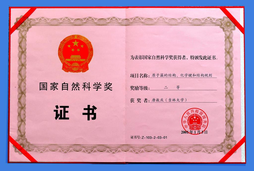 到20世纪90年代,唐敖庆已是耄耋老人,但他不顾年迈体弱,仍和他的研究集体开展高碳原子簇化学的理论研究。这项研究所取得的主要成果为原子簇化合物的分子设计和合成提供了理论依据。“原子簇结构、化学键和结构规则”这一重要研究成果获2000年国家自然科学奖二等奖。该科研成果已撰写成专著《原子簇的结构规则和化学键》,由山东科学技术出版社于1998年出版。