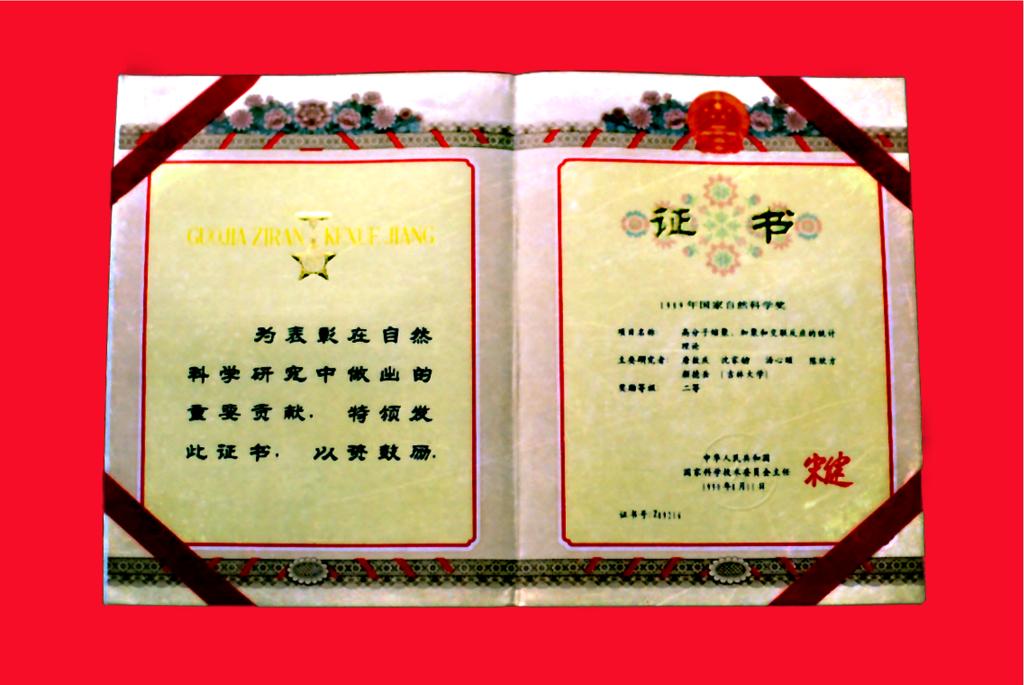 图23:唐敖庆等人获2000年国家自然科学奖二等奖证书