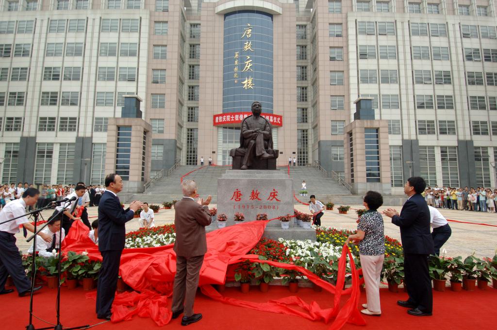 图32:2009年,唐敖庆研究所揭牌仪式(左)、唐敖庆教授塑像暨唐敖庆楼揭幕仪式(右)