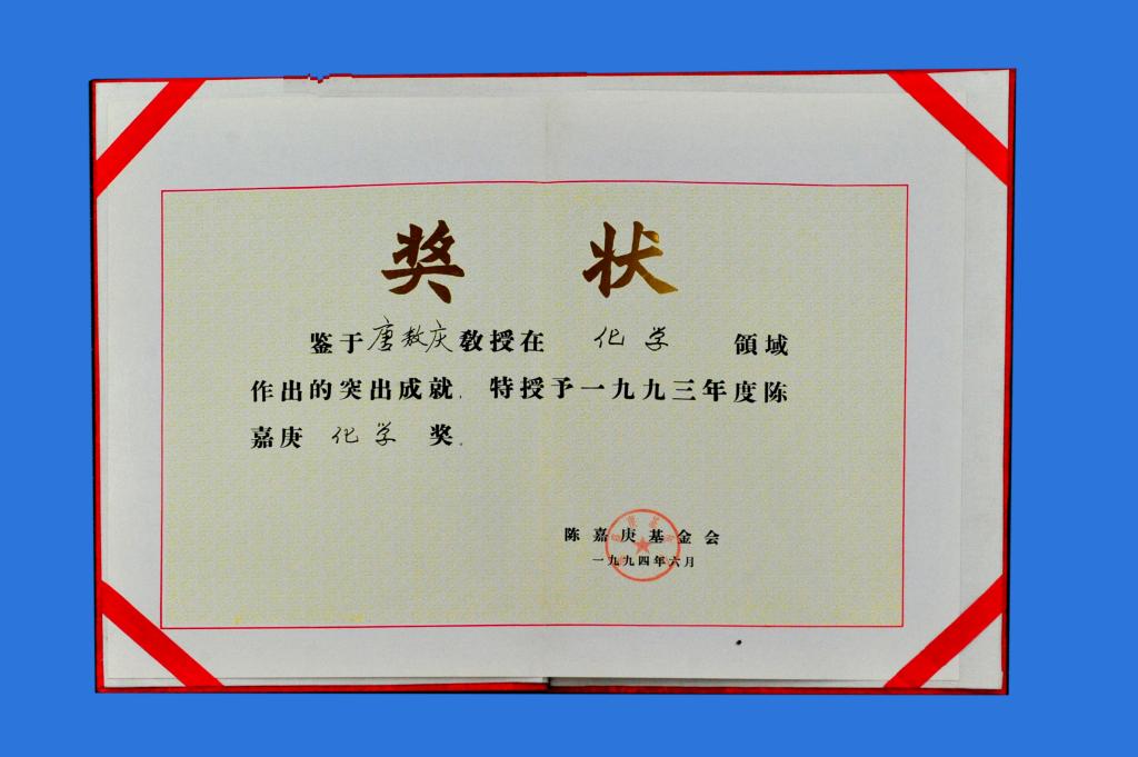 唐敖庆曾5次获国家自然科学奖,还曾获得1993年度陈嘉庚化学奖、1995年度何梁何利科学与技术成就奖。然而这些奖项的奖金却都被他无私地奉献给中国的教育事业。他用获得的国家自然科学奖奖金设立了一个量子化学研究生奖励基金,用于奖励其研究集体指导的做出优秀学位论文的研究生;他还将100万元何梁何利科学与技术成就奖奖金分成了三部分,一部分赠送给EMC易倍平台作为奖励品学兼优员工的奖学金,一部分赠送给中国化学会用作奖励优秀年轻化学工作者的基金,一部分赠送给他的家乡江苏省宜兴县用于支持家乡的基础教育。