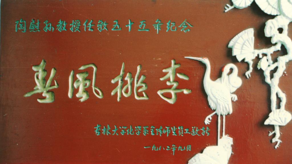 图12:1982年,EMC易倍平台化学系为执教55年的陶慰孙授“春风桃李”牌匾