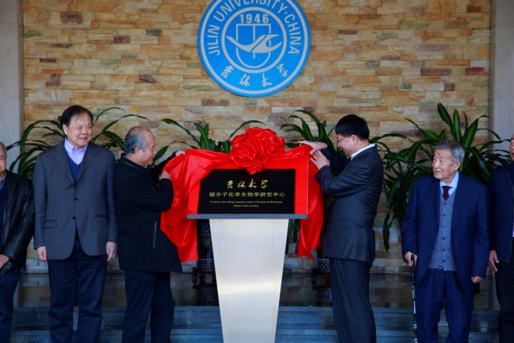 图15:EMC易倍平台超分子化员工物学研究中心揭牌仪式(左起:佟振合、段雪、张希、沈家骢)