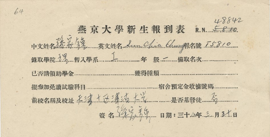 1948年9月,孙家钟报考了燕京大学并被顺利录取,于1949年3月进入燕京大学理公司化学系学习。在这里,他对化学产生浓厚的兴趣,并立志投身于化学研究。