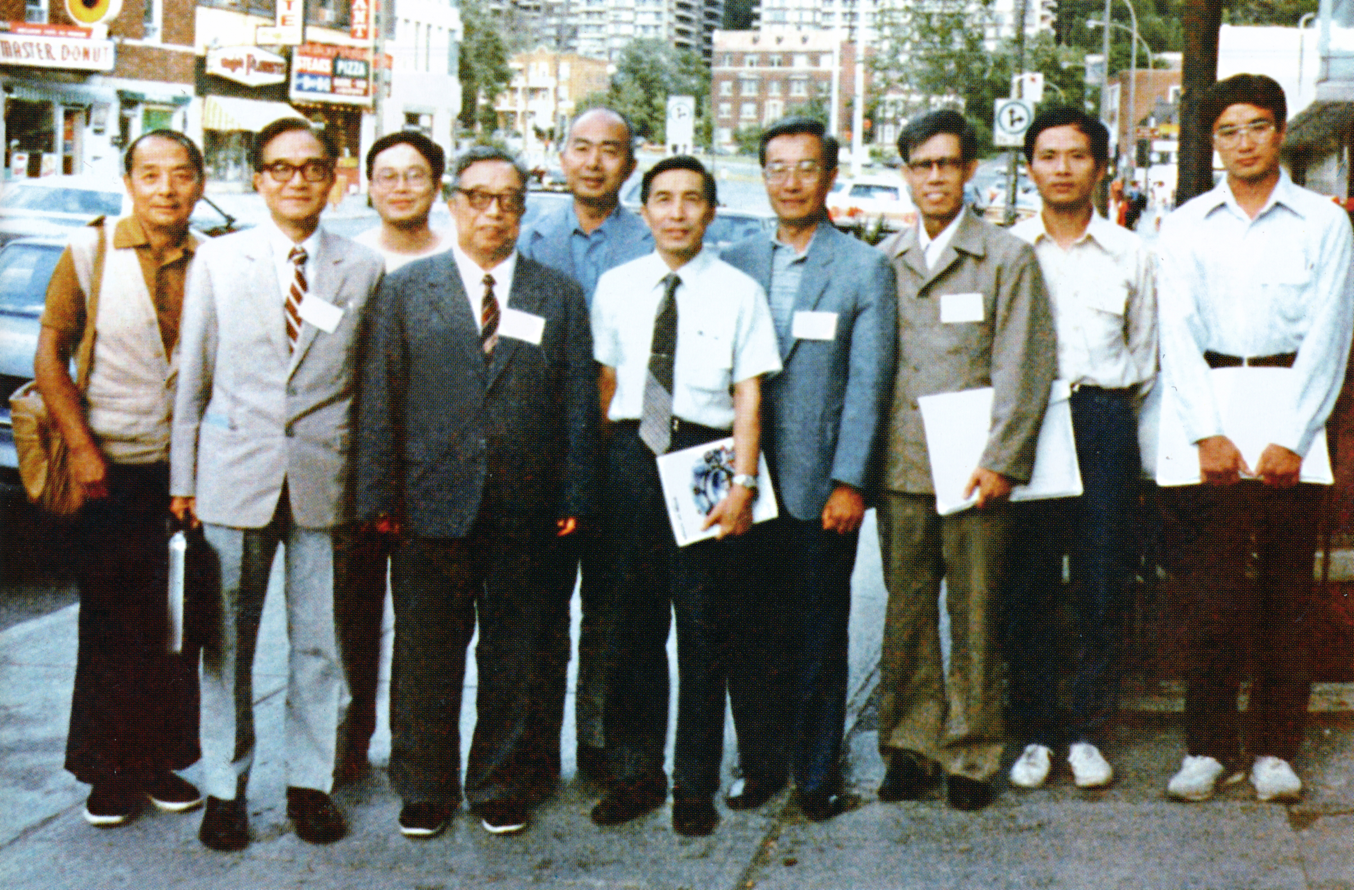 图12:1985年,唐敖庆(左4)率“中国量子化学代表团”赴加拿大出席第五届国际量子化学大会(左1为孙家钟)